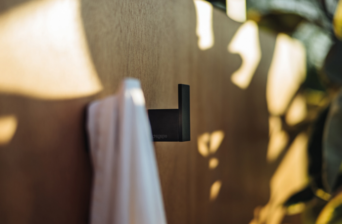 Accessories made from brushed anodised aluminium in black finish, to be matched with the range of taps with the same name. Due to their unique shape, we recommend that all wall-mounted accessories are fixed to a perfectly flat surface.
