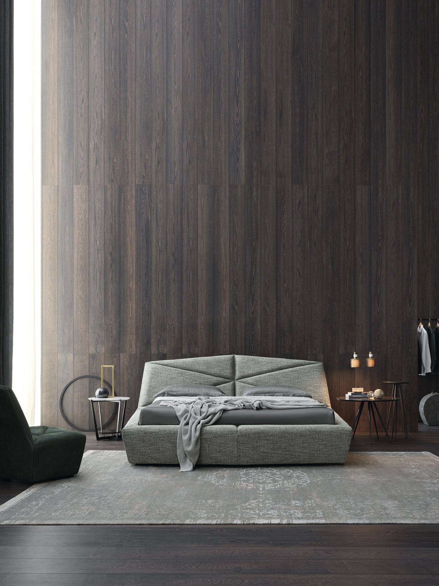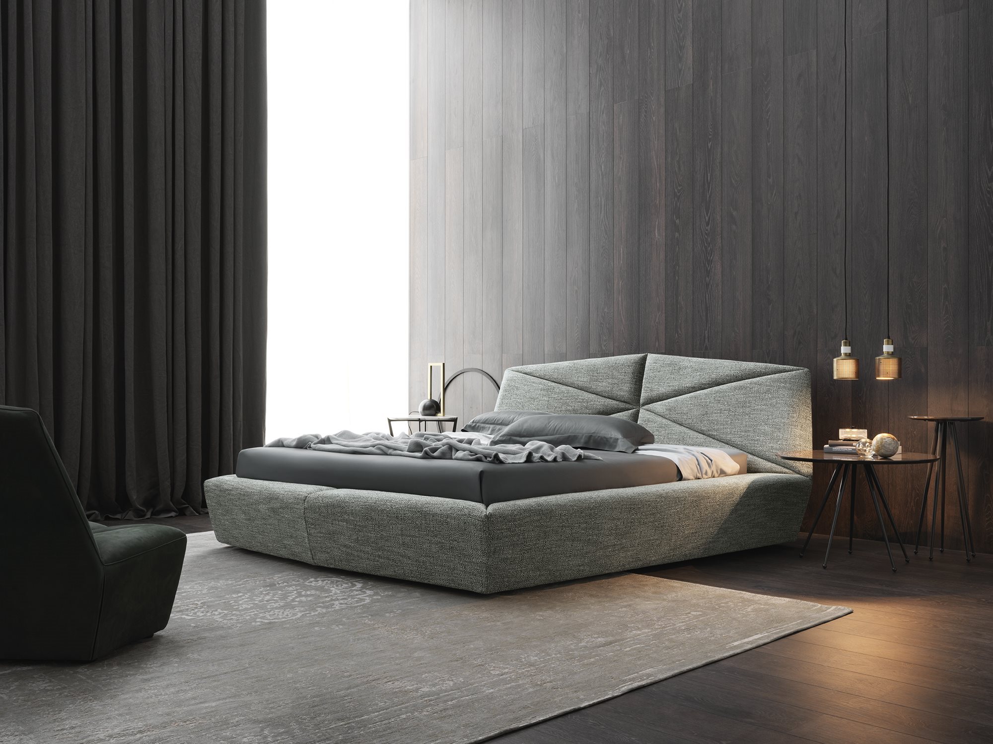 The natural follow-on from the armchair of the same name, the Gossip bed has inherited its key features: generous, bold padding creating an original look. The design of the bed head is reminiscent of the oriental art of origami in which the skill in complex and sophisticated techniques are translated into a simple shape. The perfect combination of comfort and design for an informal bed, but with a sophisticated nish and a clear-cut, contemporary twist.