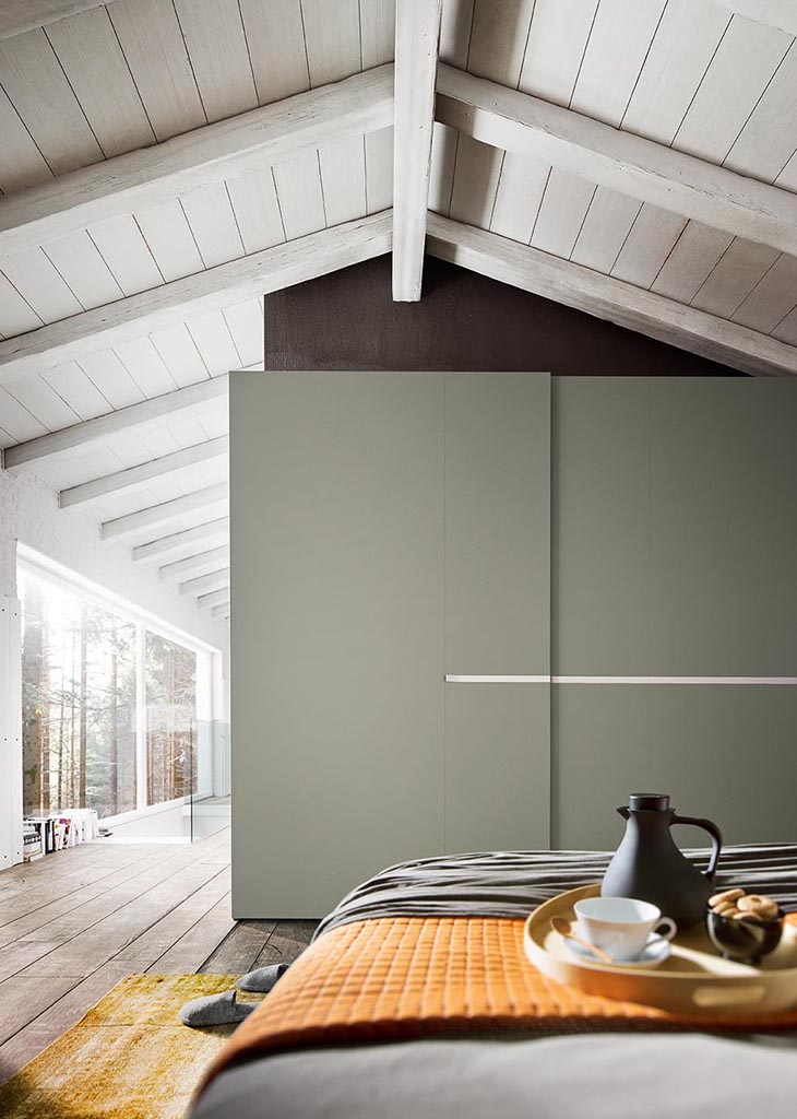 Even is a fitted wardrobe with a sliding door with a simple, linear design, available with different handles.Available in both swinging and sliding versions, it boasts a wide range of finishes.