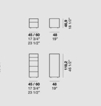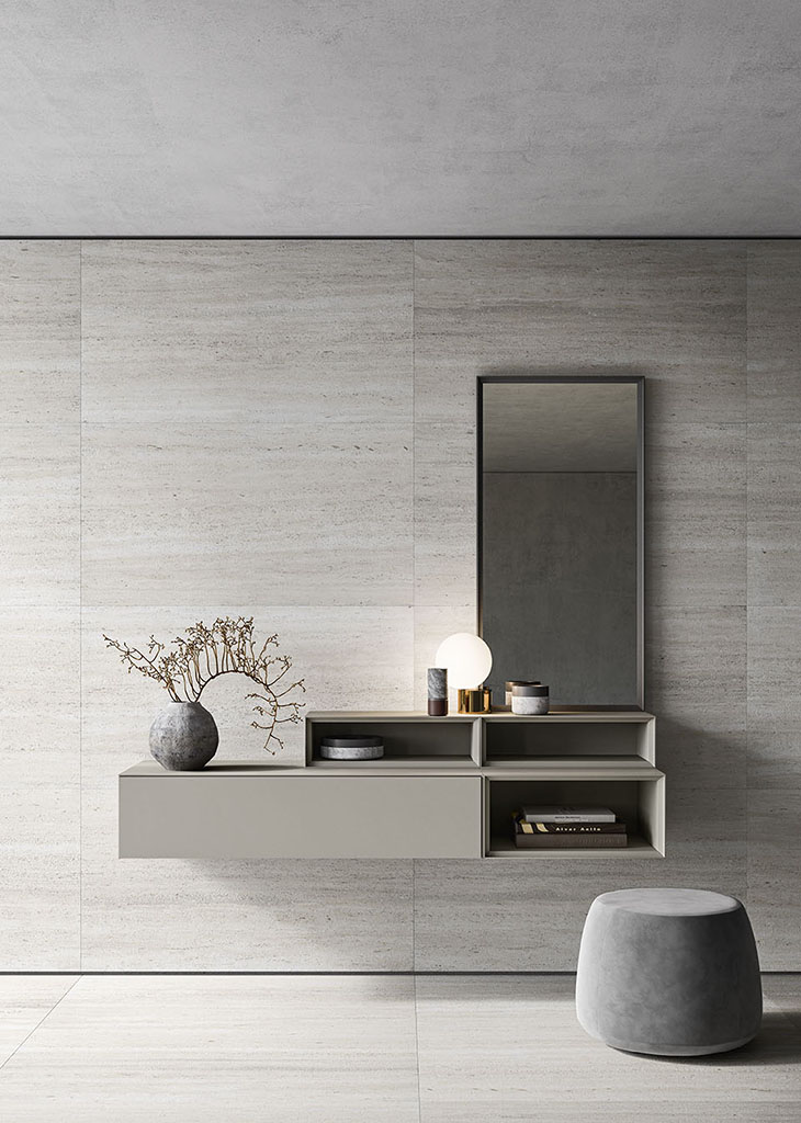 Fil designer bedroom storage units stand out for their sleek, minimalist lines. Fil is a bedroom suite that is extremely modular. It comes with two types of feet or can be wall mounted, creating a host of compositional possibilities. There are also two ways to open the units, either using the small, asymmetric metal handle or the push-pull mechanism.