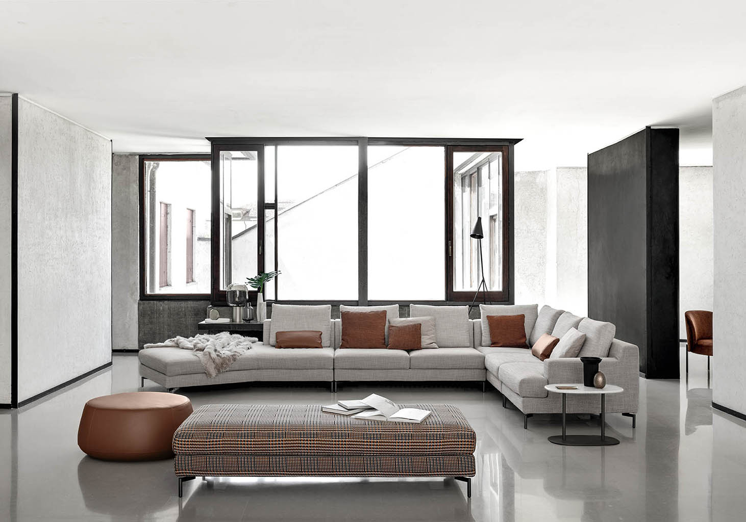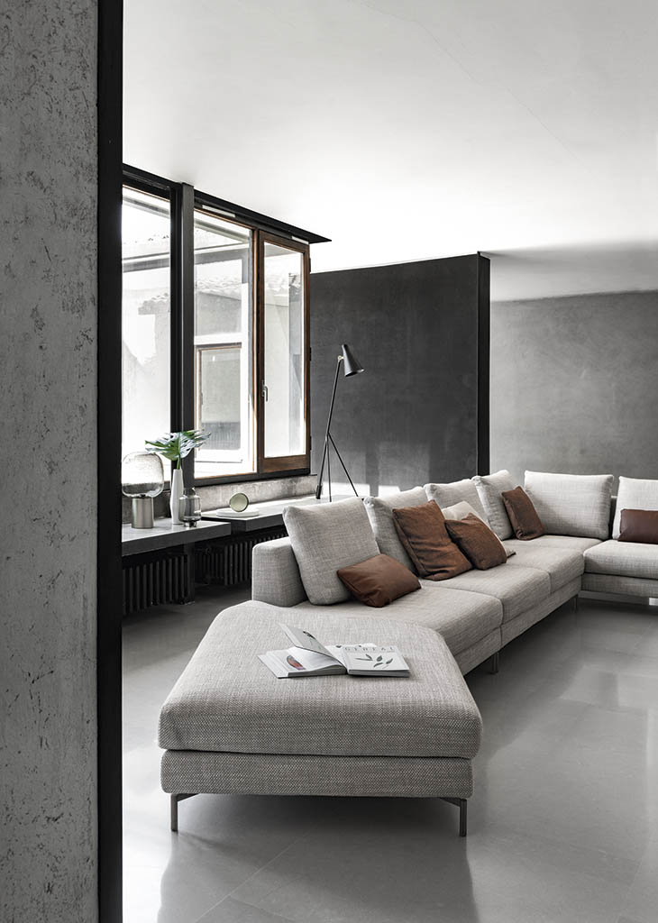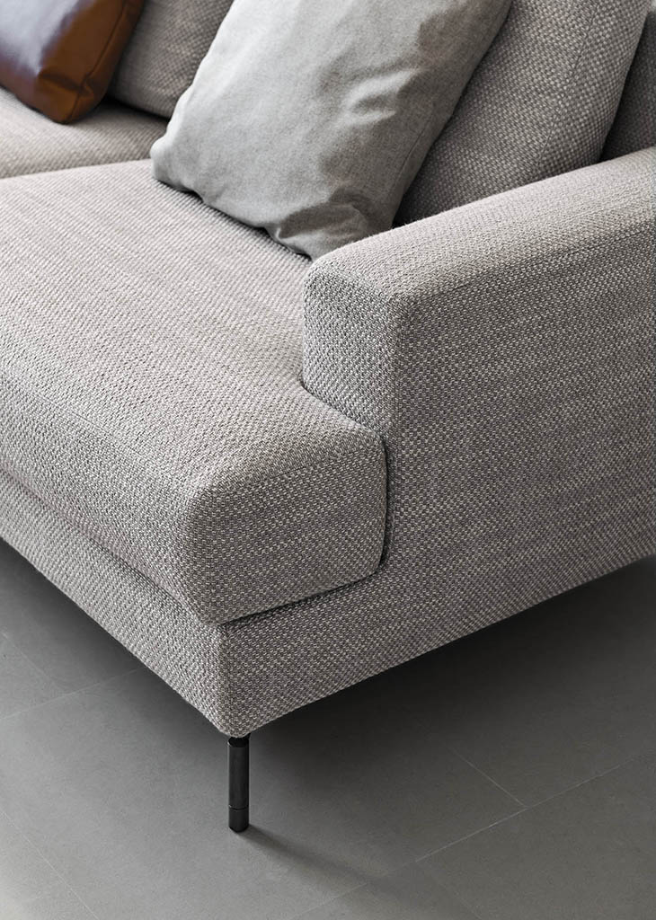 Nevada is a modular sofa that, with its simple, informal look, expresses a perfect balance between tradition and modernity. Classical in its shapes but the unusual geometry of the armrest, size of the seat cushions and simplicity of the metal feet all give a nod to contemporary taste. The diversity of modules available and the option of fabric or leather upholstery make Nevada a sofa that suits very different rooms and styles.