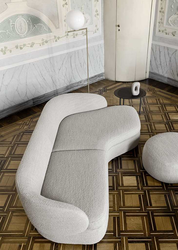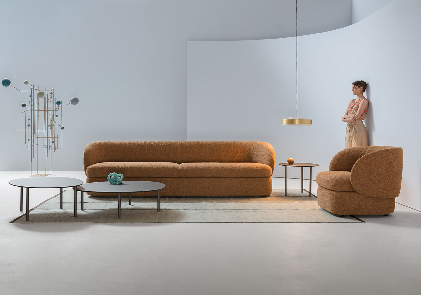 Sobi is a diverse collection of upholstered furniture made up of sofas, a single chaise longue, an armchair and a footstool. The collection represents a continuation of the journey, which began with the Raku collection, to create a sophisticated yet homely dimension of comfort. SOBI is substantial in size and has soft, organic shapes.
