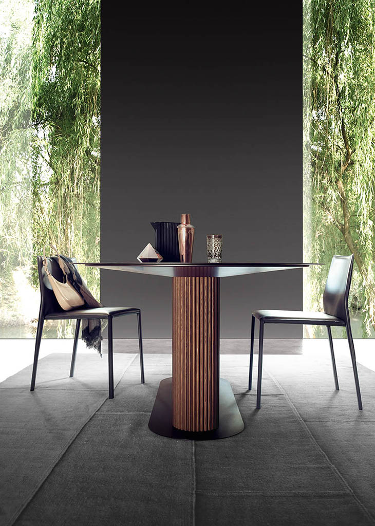 The sideboards and tables bring life to a collection that combines modernity with a touch of history.Thanks to the base being worked in strips, the Rigadin designer table can transform any living area and dining room into a timeless space.