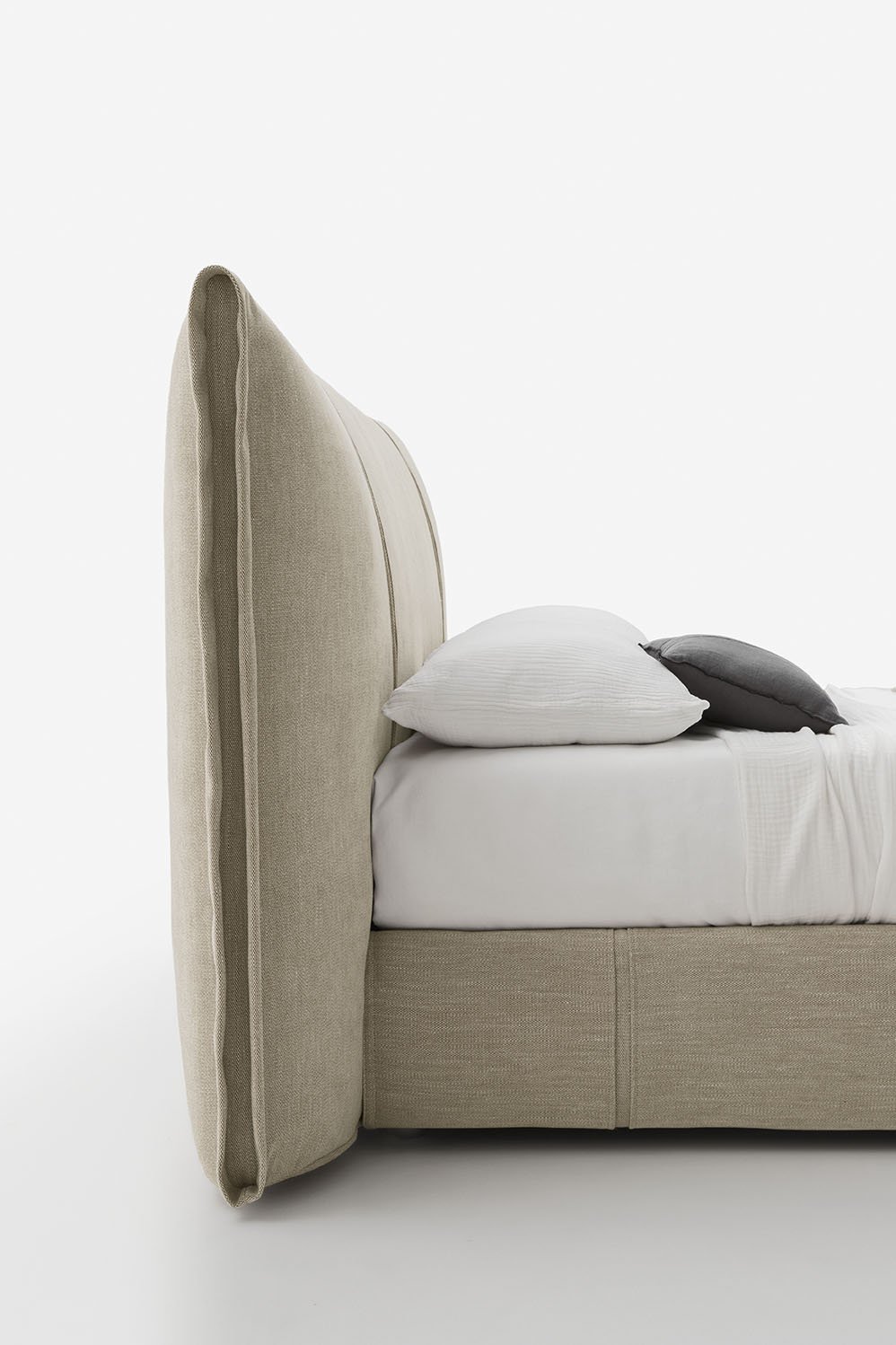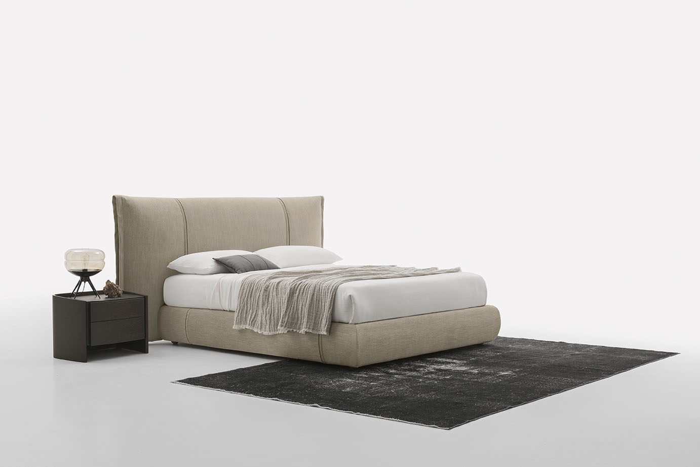 Artur is an upholstered double bed with padded headboard and divan platform. It stands out because of the vertical stitching on the frame members and headboard which creates a pleasing aesthetic effect.