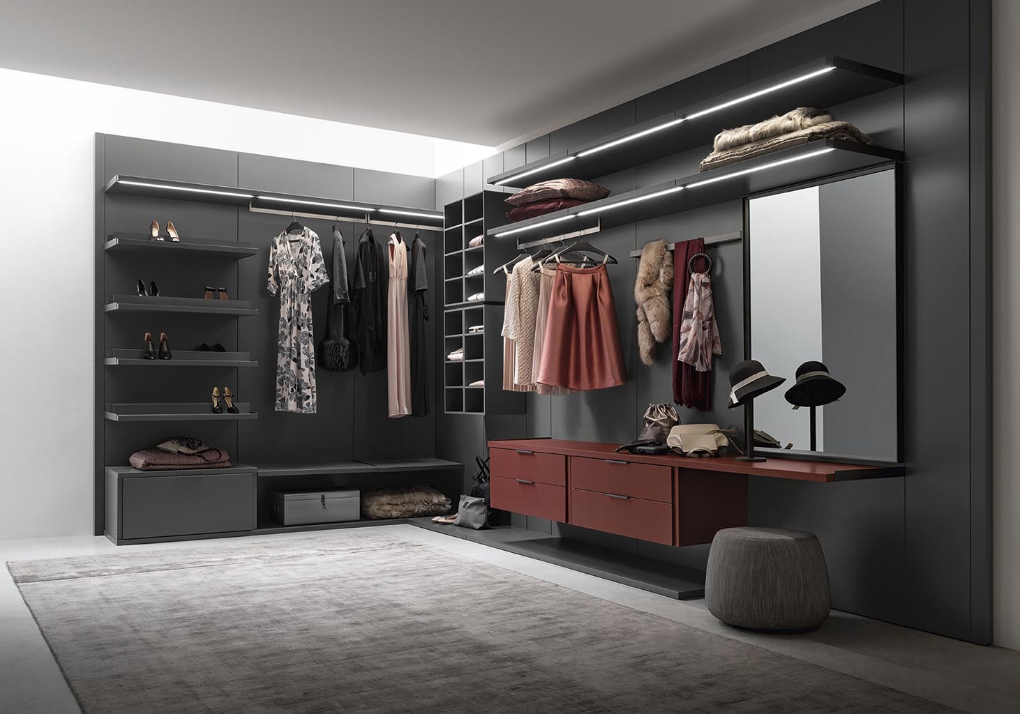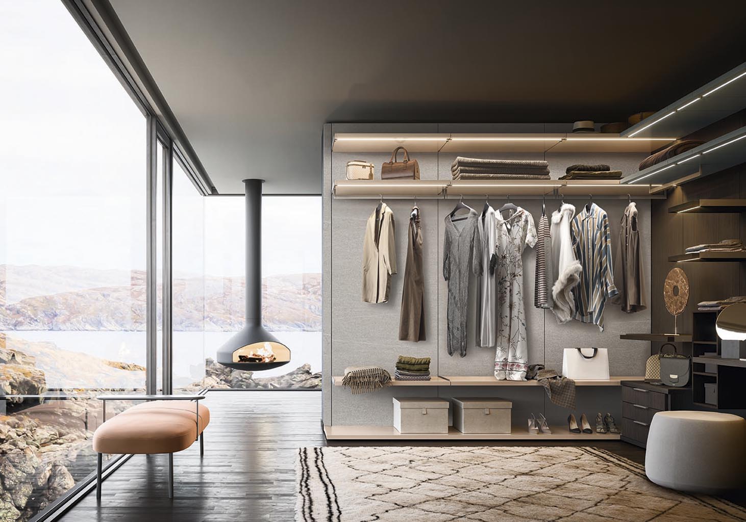 Store is a modular walk-in wardrobe made up of back panels that can be accessorised. It offers a lot of different compositions, thanks to the wide range of accessories available.