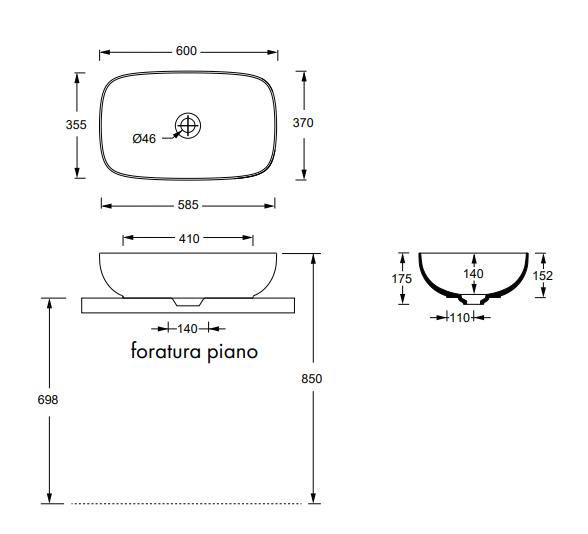 Form washbasin Rectangular 60×37 h15臺盆