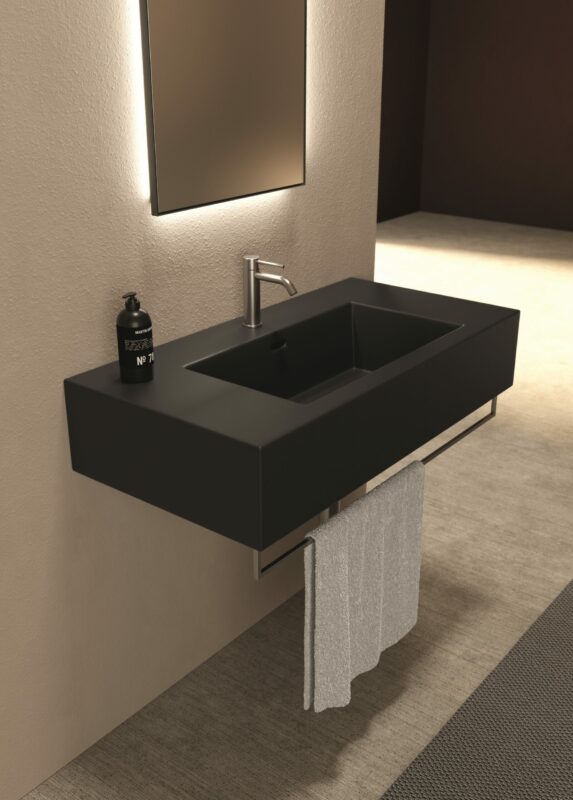 Visually statuesque and with a strong personality. A design that evokes the classic basins in a modern way, mixing functionality and elegance.