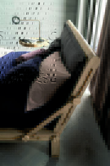 In the picture it is visible with a padded headboard, covered with a T104 linen blend fabric.