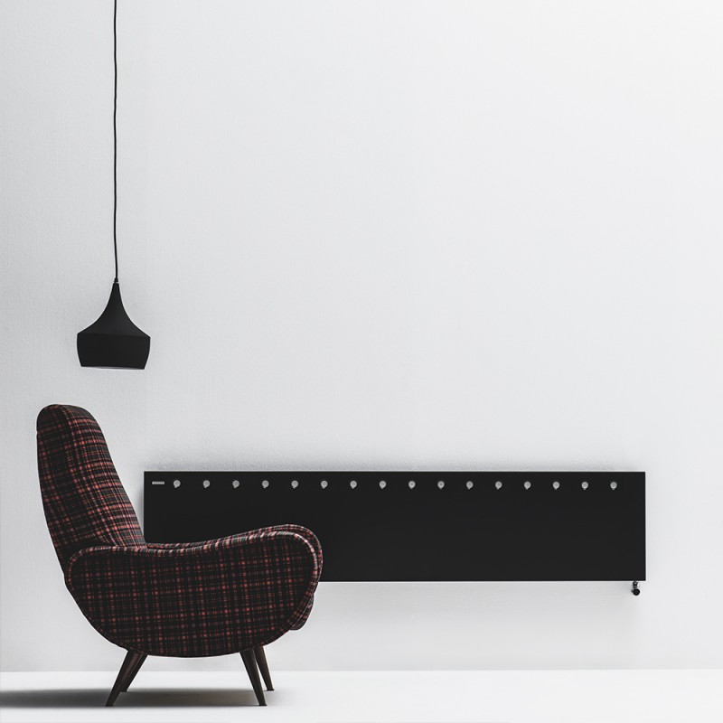 The Flat designer radiator is a decorative radiator designed by Andrea Crosetta; it is part of the Design collection by Antrax IT. The Flat radiator comprises a painted steel plate, which is embellished and adorned by a series of tiny holes arranged in line, a touch that makes the designer radiator original and suitable for use even in contemporary settings.