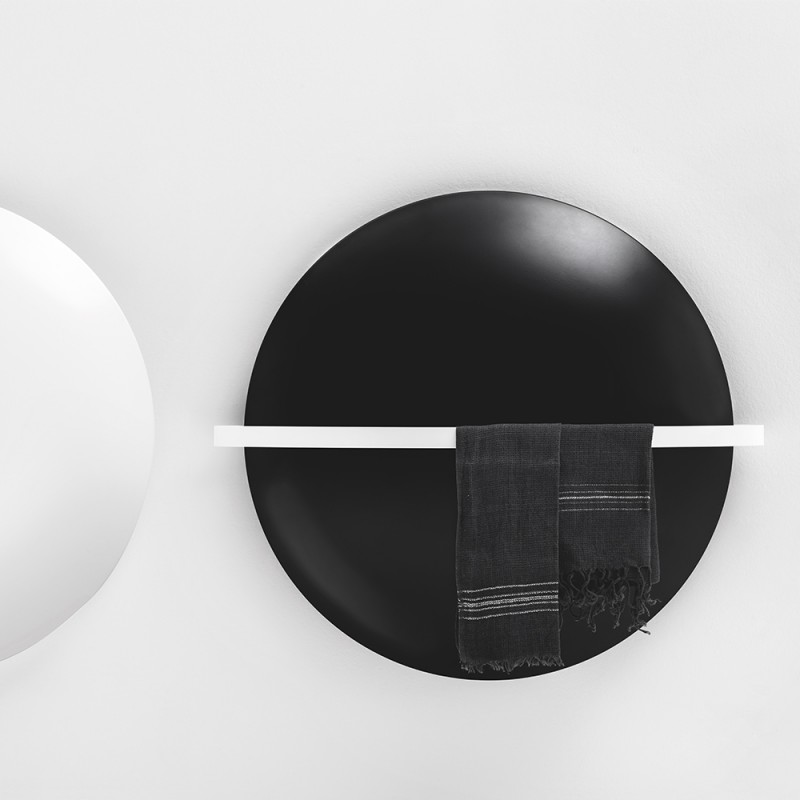 Saturn & Moon round radiators. A highly sculptural piece of Zen minimalism that is calm, contemplative and relaxing. Saturn features a towel holder handle (Saturn’s ring). When the towel holder is removed from Moon, it fits perfectly into any environment.