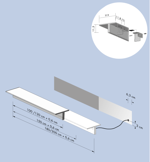 ‘T’ is the first ‘bespoke’ electric radiator wall mounted, made of extruded aluminium with a T-shaped cross section (hence the name), and available in multiple configurations, in both the vertical and the horizontal version. Owing to its unique characteristics, in addition to the standard 120, 150 cm and 200 cm sizes, the electric radiator can also be ordered in the customer's required length, from a minimum of 100 cm to a maximum of 250 cm, in 1-cm steps.