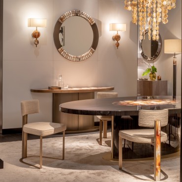 Meant for entertaining your guests, Elia trolley is the perfect choice to stock your bar essentials or serve delicacies and drinks without compromising elegance. The sleek design of the structure in glossy ebony is enriched by exquisite horn details setting this serving cart apart. Practicality is ensured by two bottle racks in 24k gold plated brass and a removable serving tray in horn and ebony veneer with gloss finish. Equipped with rubber castors, it ensures easy movement around your home.