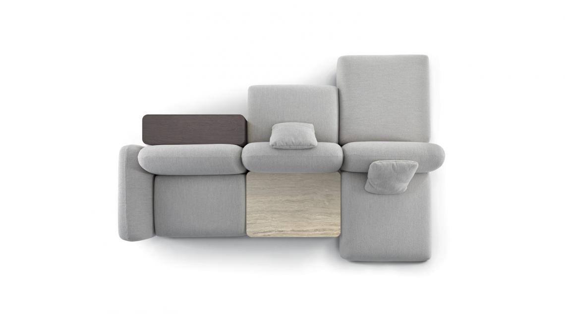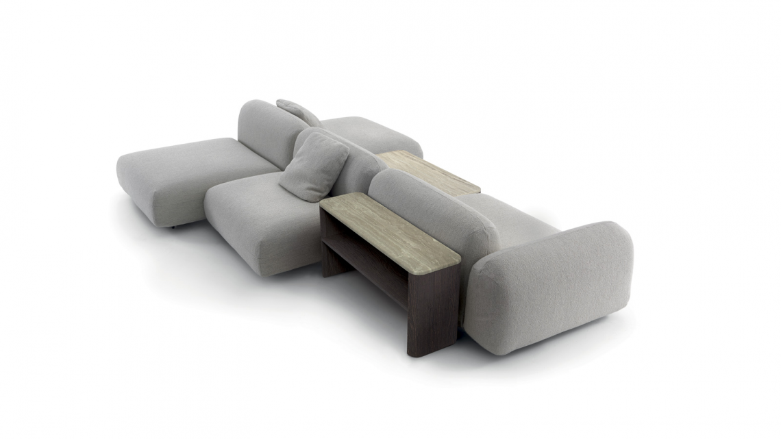 The collection is composed by small tables available with circular or square top with a sturdy steel base, by two service small tables defined by their elevated tabletops circular or rectangular that can be easily repositioned, by a shelf unit and a small table with drawer in a sturdy wooden construction, available also with marble top.