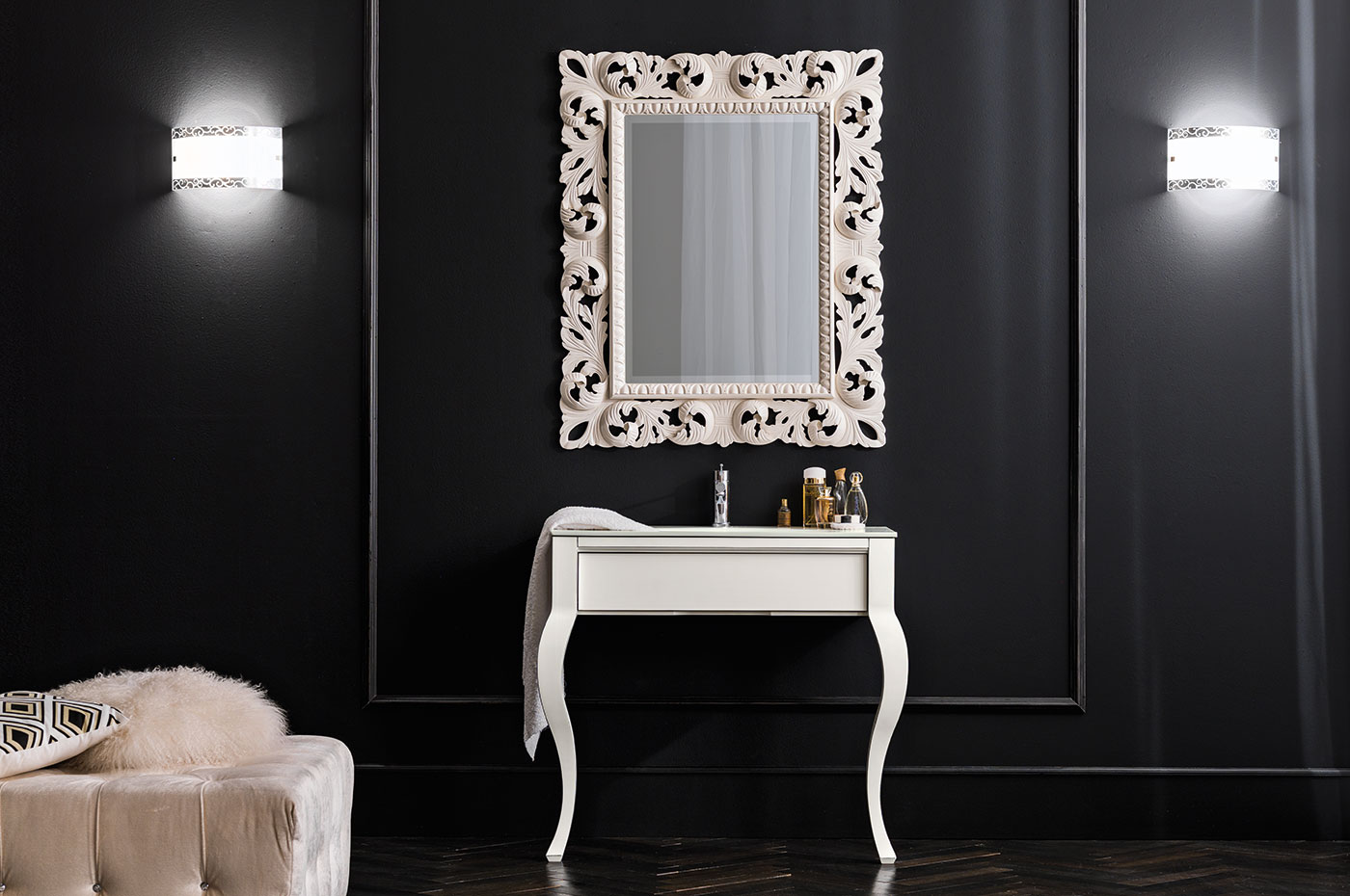 Allusioni sussurrate e ammiccanti suggestioni incontrano la tradizione costruttiva per suggerire un’atmosfera oltre il tempo tra i ri?essi del vetro; esplicito rigore ed eloquente semplicità sposano l’eleganza formale per dare signi?cato e valore allo spazio: tutto questo è Metafora. Coerente con la tradizione Artelinea Metafora riassume la volontà di fare del cristallo un segno distintivo, sottolineandone da una parte la purezza nella versione bianca con lavabo integrato e dall’altra la versatilità nella versione con top in cristallo colorato e lavabo in appoggio.
