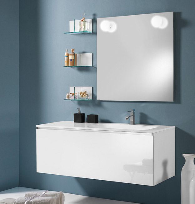 La particolarità di Domino è quella di offrire una vasta scelta compositiva, pur essendo elementi monoblocco in Cristallo. Domino e Domino44 si differenziano per la diversa profondità (permettendo di adattarsi alle più svariate esigenze spaziali) e per le caratteristiche delle aperture: dal cassettone ai due cassetti ?no al cassetto singolo.