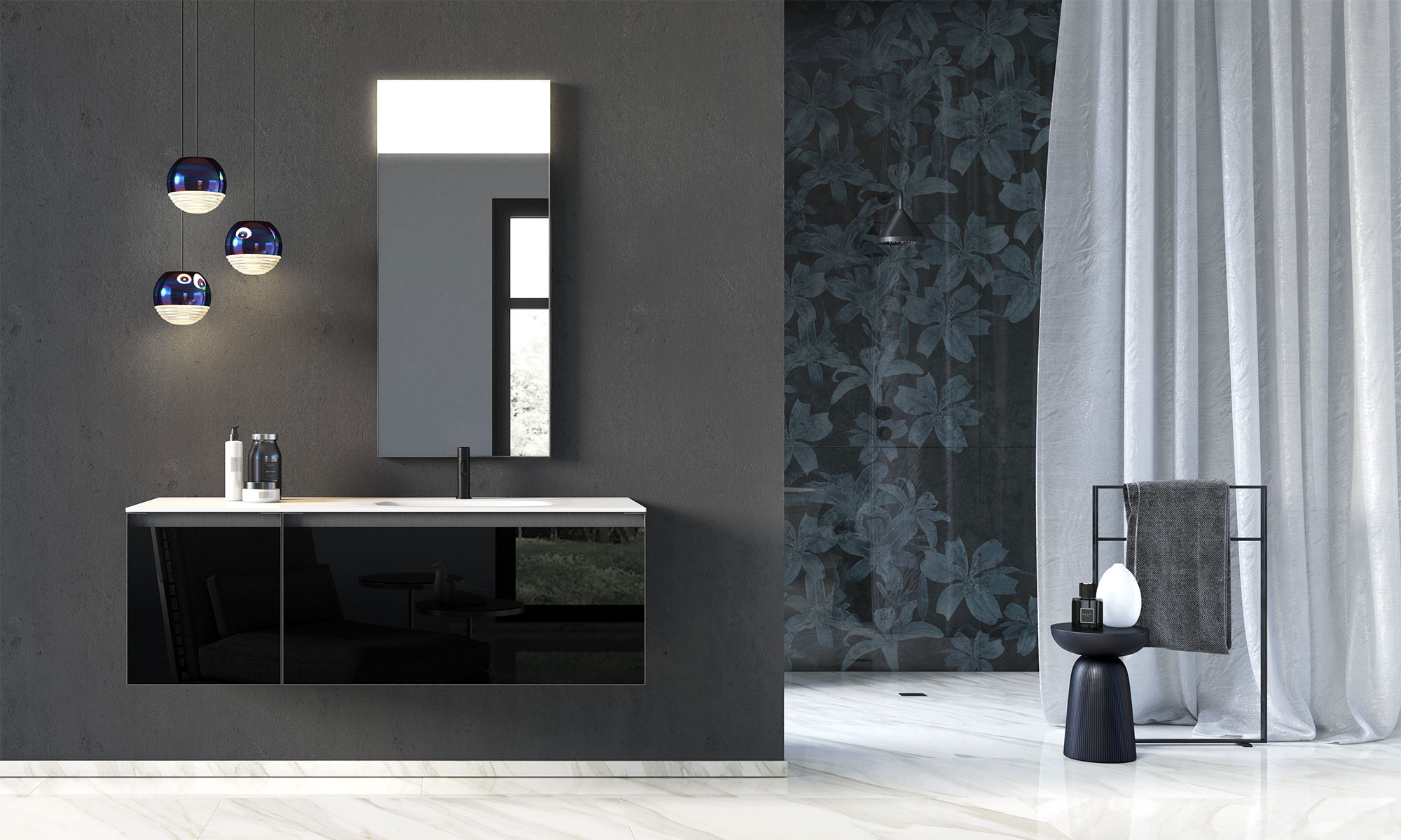 Programma di mobili contenitori versatili e funzionali caratterizzati dalla possibilità di essere interpretati tramite l’utilizzo di svariate finiture, quali ad esempio, vetri, specchi, grés decorativi e grafiche.