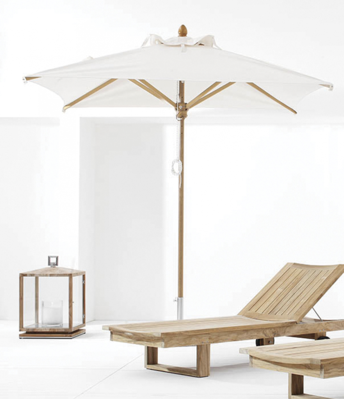 Struttura in legno per esterni, tinto Teak. Telo in acrilico da 350 gr Ecrù.