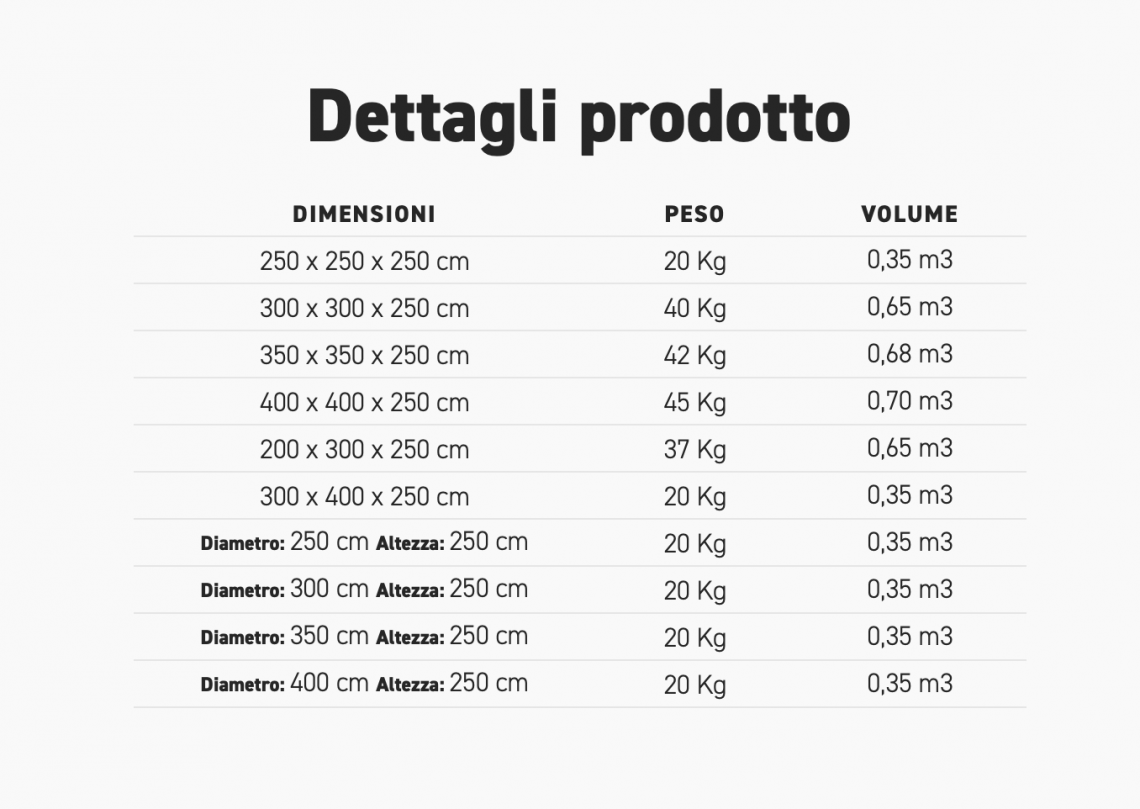 Ciascun basamento deve essere commisurato alla dimensione dell’ombrellone: info tecniche azienda