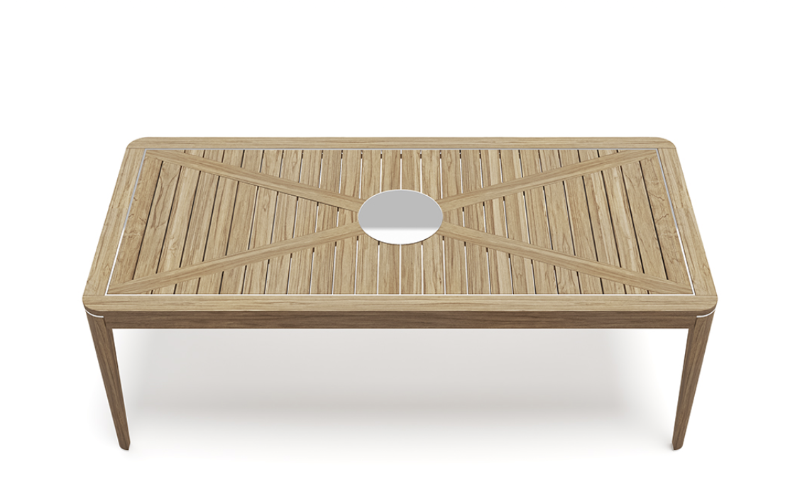 Strutture in TEAK massiccio Asiatico; dettagli in acciaio satinato. Disco in acciaio diametro 32 cm.