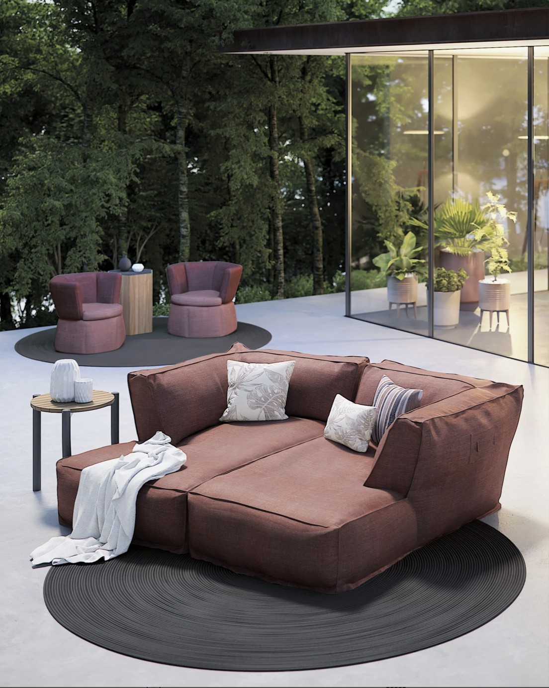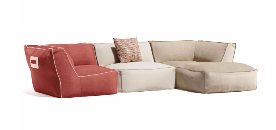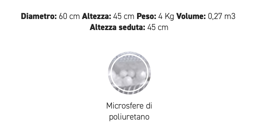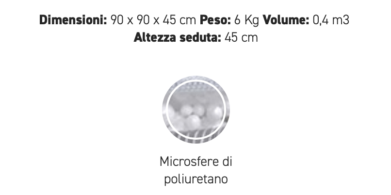 Composizione modulare costituita da microsfere di polistirolo traspiranti, rivestite con tessuto tecnico traspirante.