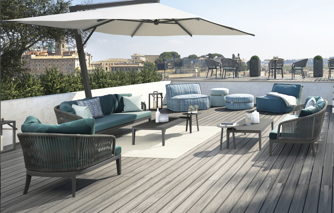 Struttura in ferro zincato e verniciato a polveri epossidicohe per esterni.