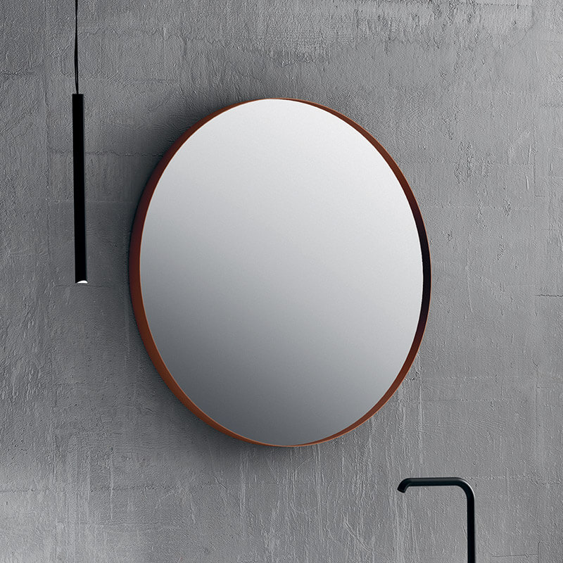 A washbasin unit with dark, intellectual nuances, thin and essential feet in burnished metal, recalling the matching Tubino light, a bright marble top coordinated with the base of the floor-standing towel rack.