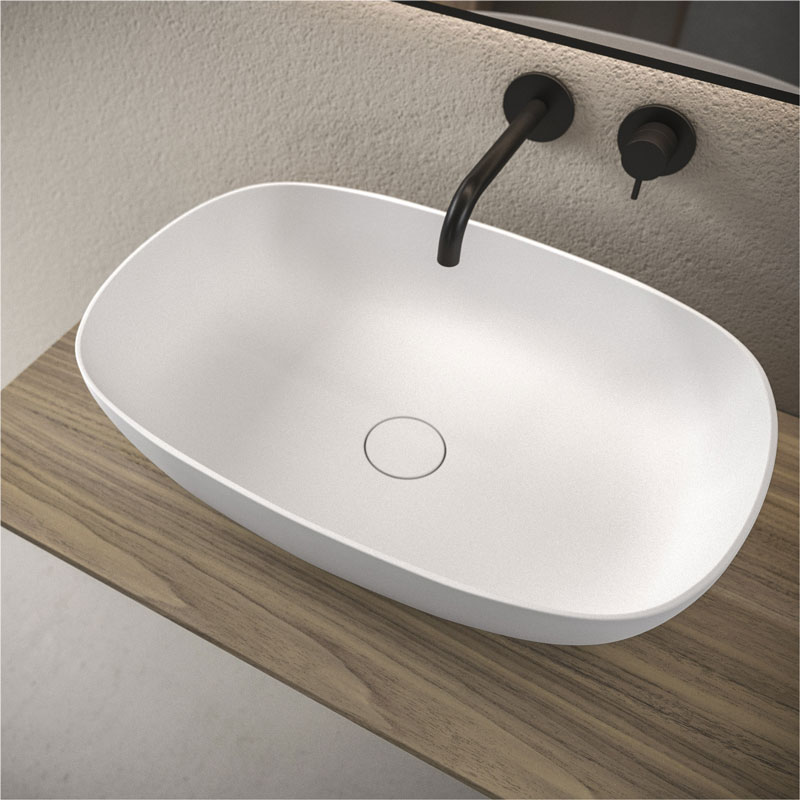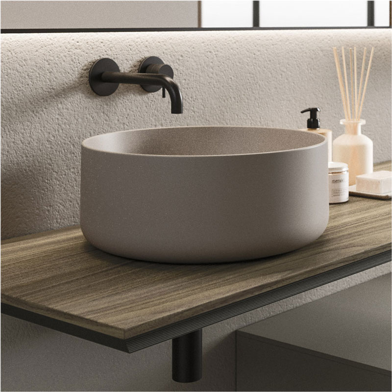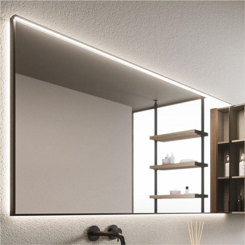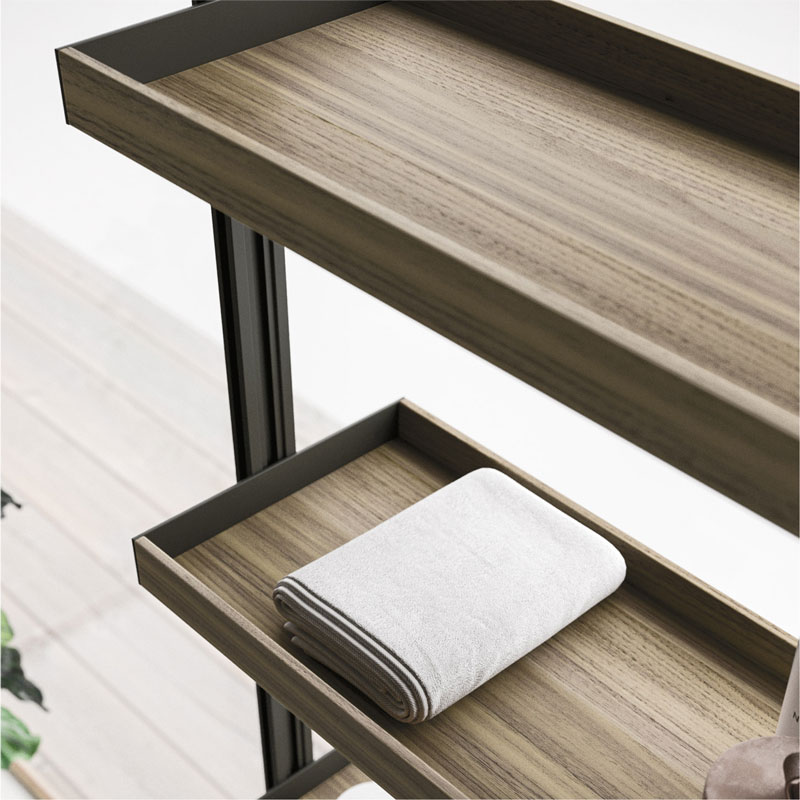 The characteristic Alu-Top aluminium frame with 45° section, with no visible joints, slims the composition down supporting a 12 mm thick top.