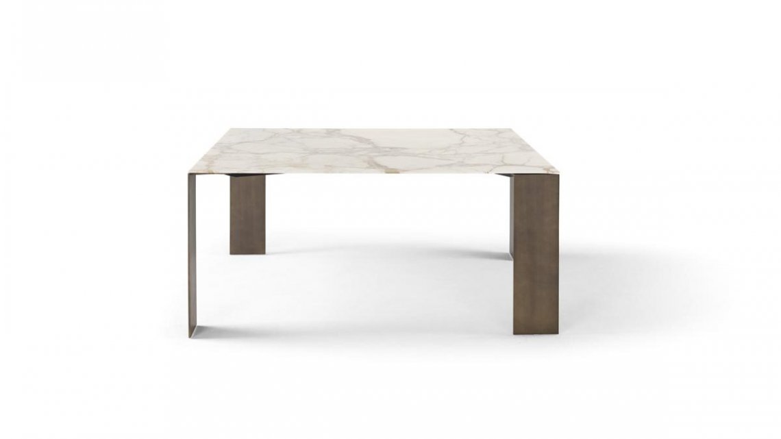 Fragilità e forza, leggerezza e solidità: sono questi i confini entro cui si muovono i tavoli Exilis, con le loro linee essenziali, gli spessori minimi delle lastre che forzano fino all’estremo le potenzialità dei materiali, e al contempo la stabilità assoluta data da esatti rapporti di forza tra basi e top. Contrastano tra loro anche la semplicità formale delle linee che si intersecano creando piani d’appoggio minimali, e l’importanza dei materiali scelti: lamiera metallica per la base e marmo o legno per il top. Exilis è una collezione di tavoli dalla forte personalità che si inserisce in ogni tipologia di living grazie alla capacità di assumere di volta in volta aspetti differenti a seconda delle finiture scelte.