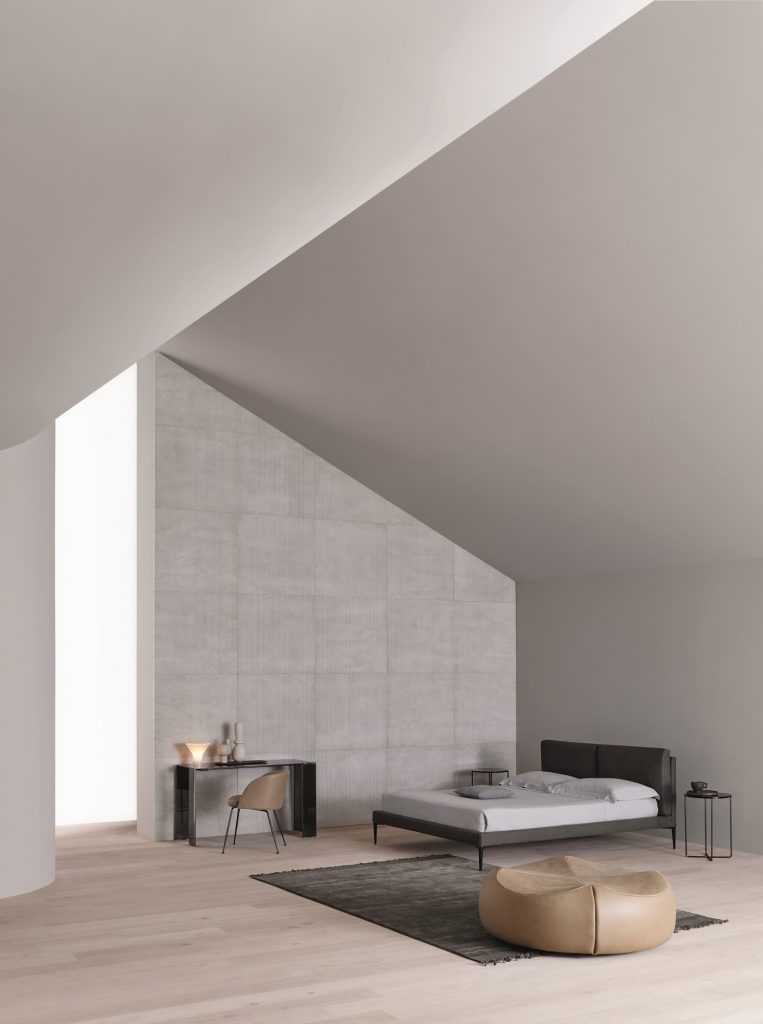 Il letto Segno unisce linee pulite e sicure con una forma accogliente e confortevole.