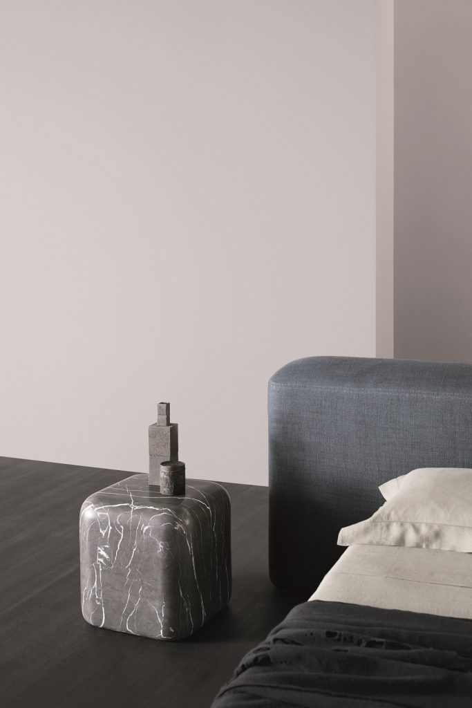 Un’antica strada romana, lastricata di pietre levigate dal tempo, affiora in un bosco o da un campo di grano e prende corpo: le geometrie assumono forme tridimensionali e in un originale gioco di volumi danno vita allo schienale del letto Lapis. Nella versione asimmetrica, lascia spazio alla possibilità di affiancarci un comodino, da Amura proposto con la collezione Lapis coffee table.