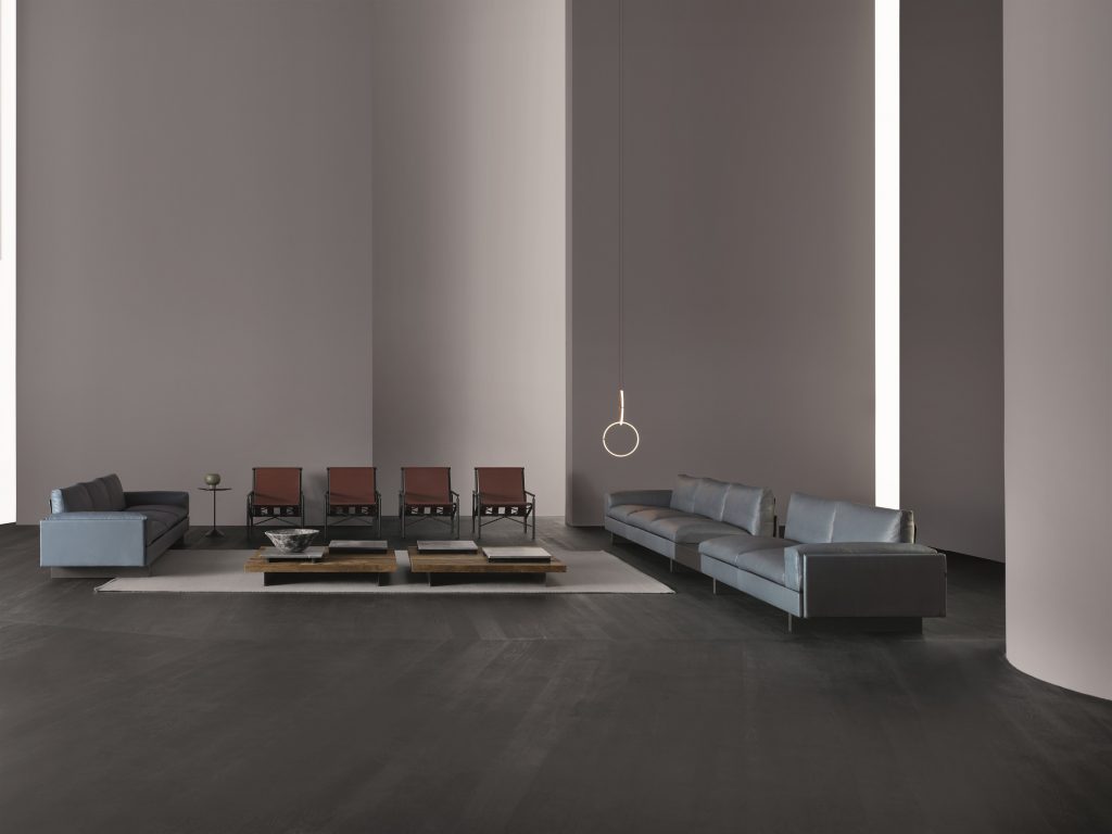 Il divano esprime perfettamente morbidezza e comfort attraverso un design senza tempo: ampi cuscini morbidi, bassi e confortevoli quasi racchiusi in un “vassoio” rigido che li accoglie.