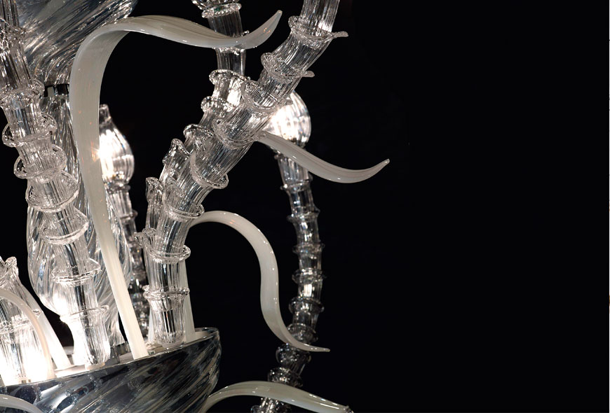 Seguso chandeliers embody the nature of shining glass. Developed with form, style technique, and different light translucencies, Seguso chandeliers over the centuries have adorned princely residences, large hotels, theaters, and museums.