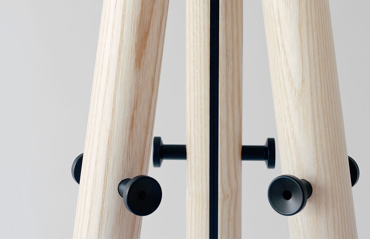 Kiila衣帽架由三個(gè)木腿和標(biāo)志性的Kiila楔組成,簡(jiǎn)單而堅(jiān)固。 受設(shè)計(jì)師丹尼爾·里巴肯(Daniel Rybakken)過(guò)去用來(lái)懸掛大衣的相機(jī)三角架的啟發(fā),它的重心較低,可以承受重物而不會(huì)傾翻。 像生產(chǎn)線中的所有零件一樣,其構(gòu)造也已變得透明:楔形金屬接頭特意可見(jiàn),與實(shí)心煙灰腿形成了光滑的粉末涂層對(duì)比。 衣帽架既堅(jiān)固又優(yōu)雅,即使在最小的房間里也可以實(shí)用地存放夾克,手袋和其他物品。