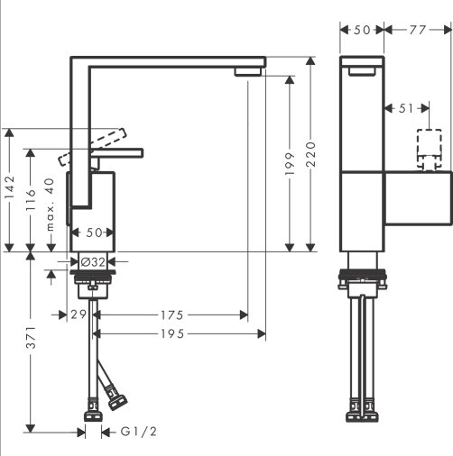 Single lever basin mixer 190 with push-open waste set - diamond cut 2 ticks