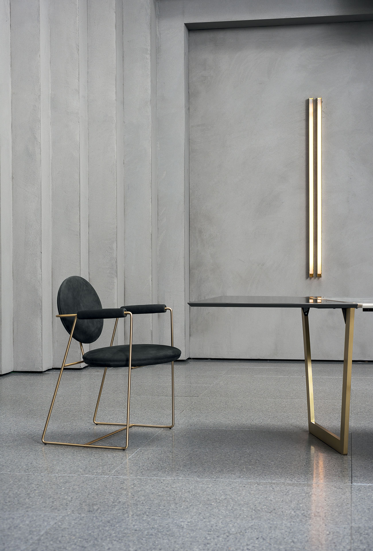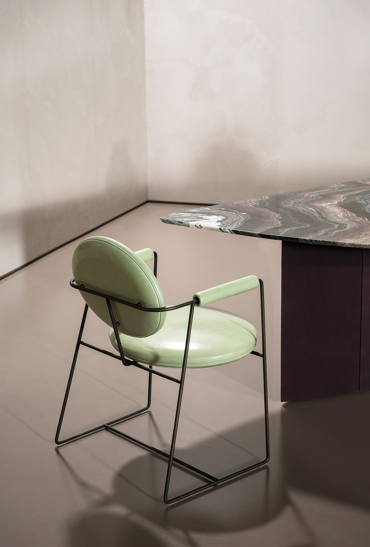 Between the 1960s and 1970s, designers envisioned the house of the future as a dynamic and functional place. Fascinated by the space race, they think of furnishing solutions that can accompany man among the stars; they design new shapes and create them with materials never used before. Many of the environments in which we live today are those of the time, others have remained pure utopia from which it is possible to draw to renew everyday language. In its aerial profile, a synthesis of circle and trapezoid, the Gemma chair by Baxter interprets those codes, opening possible perspectives on those visions.