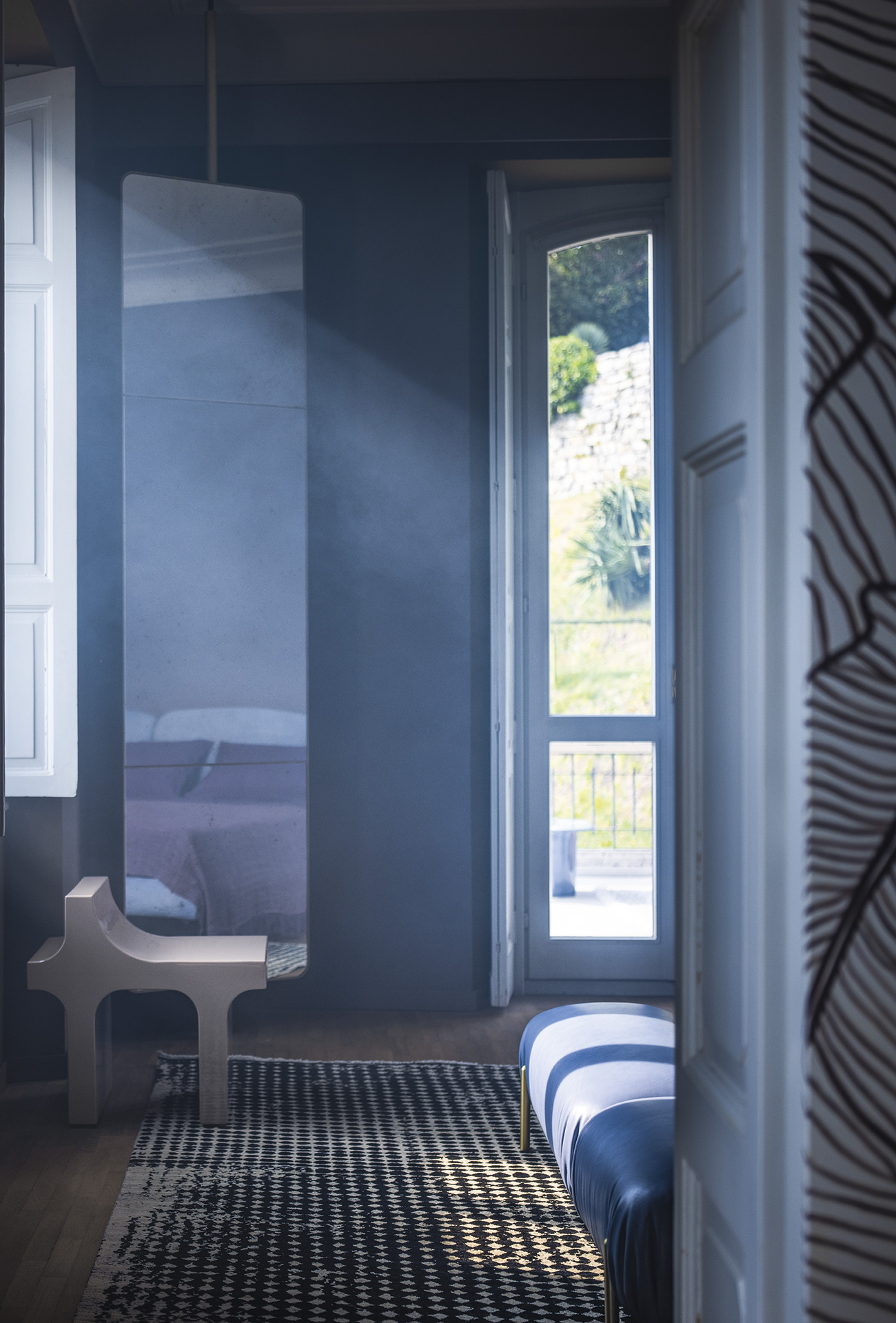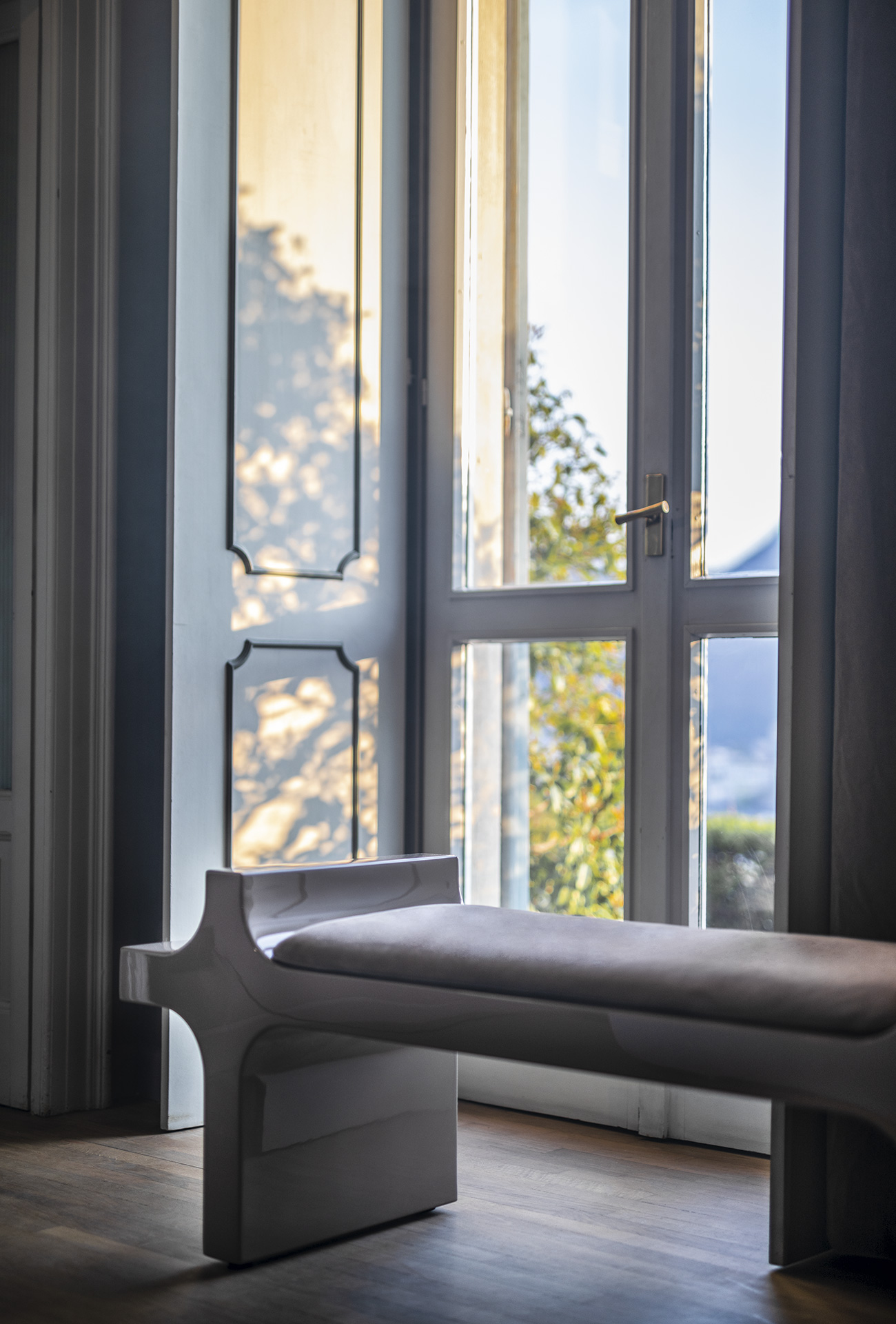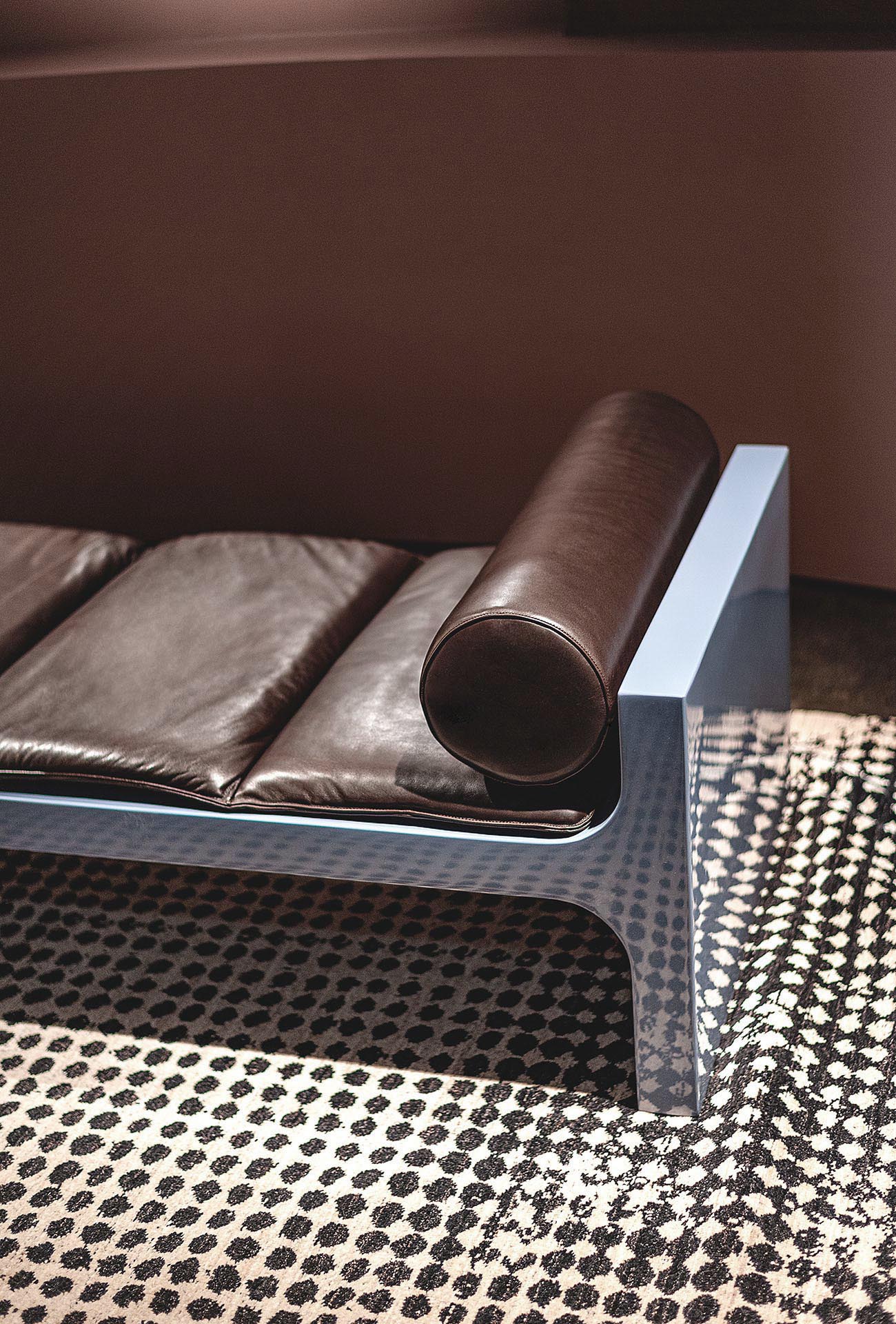 Stool, armchair, bench and lounger, in lacquered finishes, sparkle with glossy reflections and permeate the outdoors with a diversity that one immediately wants to get close to. The colour palette is borrowed from the pop, bourgeois, vibrant canvases of neatly composed life painted by David Hockney. To reassure us and give us a comfortable place to sit, they can be accessorised with cushions and mattresses in leather or fabric in a wide range of variants also designed for outdoor use, the great Baxter classics.