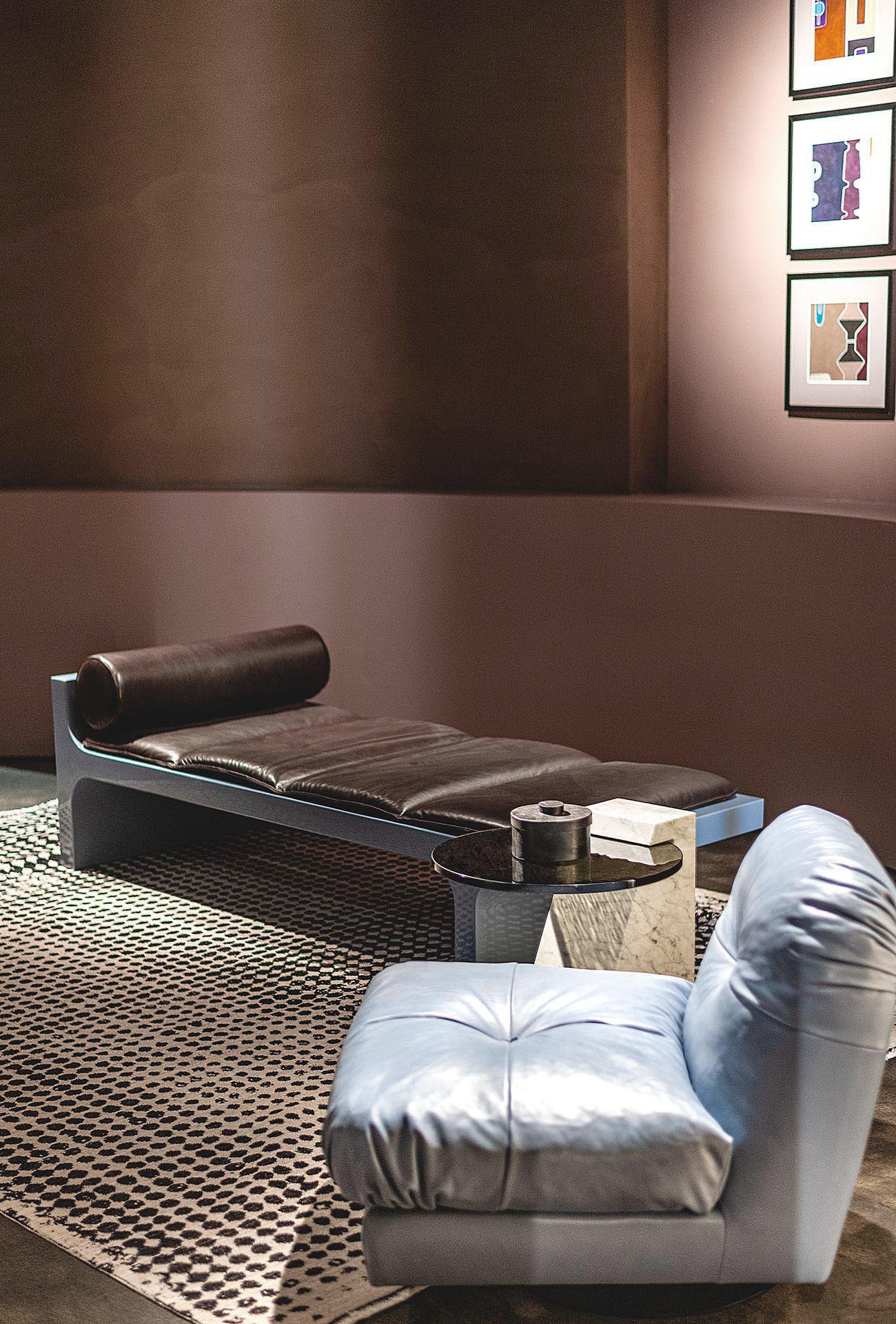 Dharma, the new collection from Baxter, is inspired by that moment when the project plays with quotation and ornamentation returns to the centre of interest even in design, those 1970s made of glamour beyond fashion, and translates them into four sculptural pieces that are plastic, solid and, at the same time, dynamic.