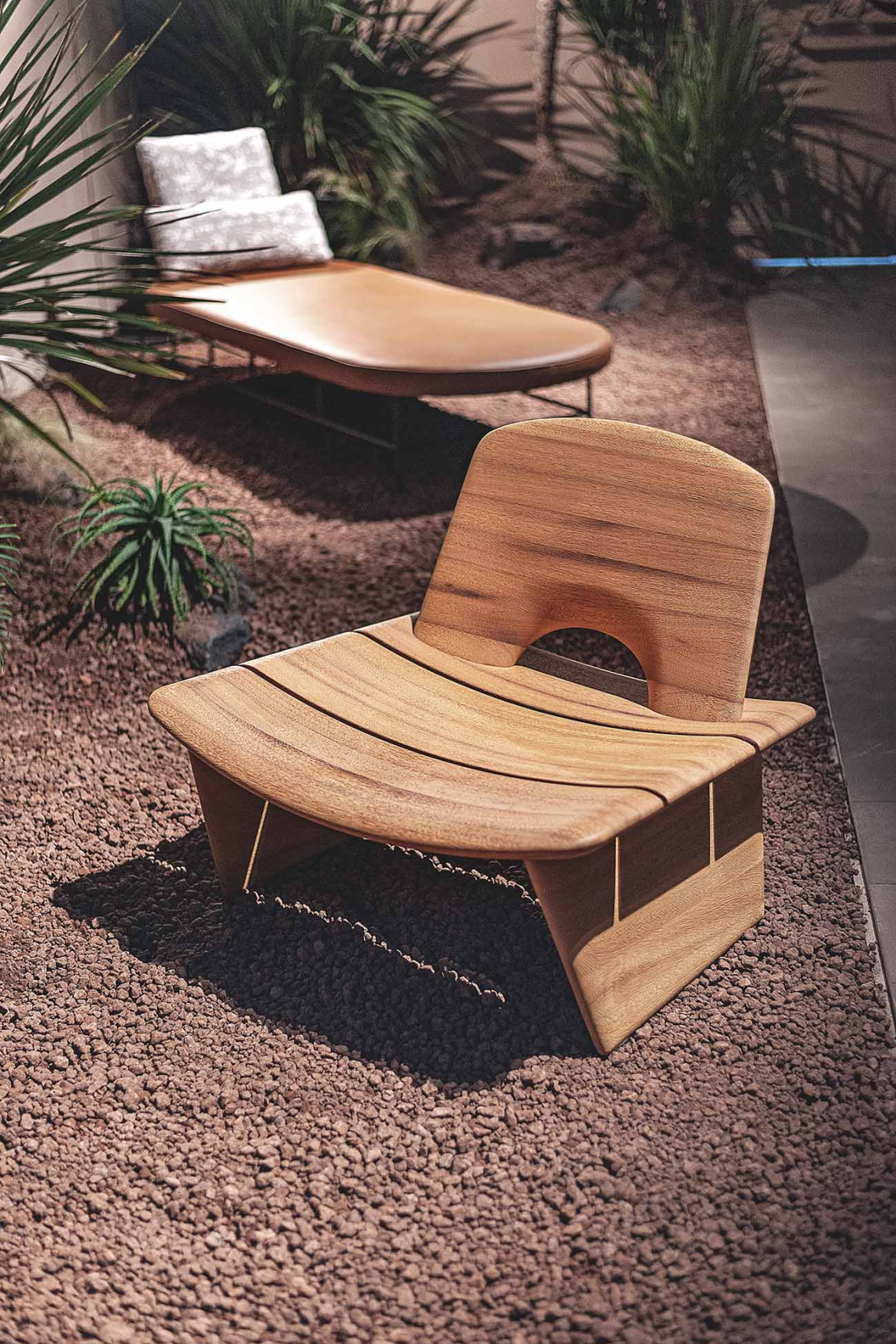These include the Hakuna Matata armchair. Its name is a declaration of intent: named after the famous expression which in Swahili means “no worries”, with its decisive and compact curved lines it suggests an unprecedented approach to the time we spend in the garden as well as in the home. From the backrest, which draws a small arch in the part that connects it to the wide, gently concave seat, to the two solid legs on which it rests firmly, this item designed by Roberto Lazzeroni smiles reassuringly at us in its uniqueness.