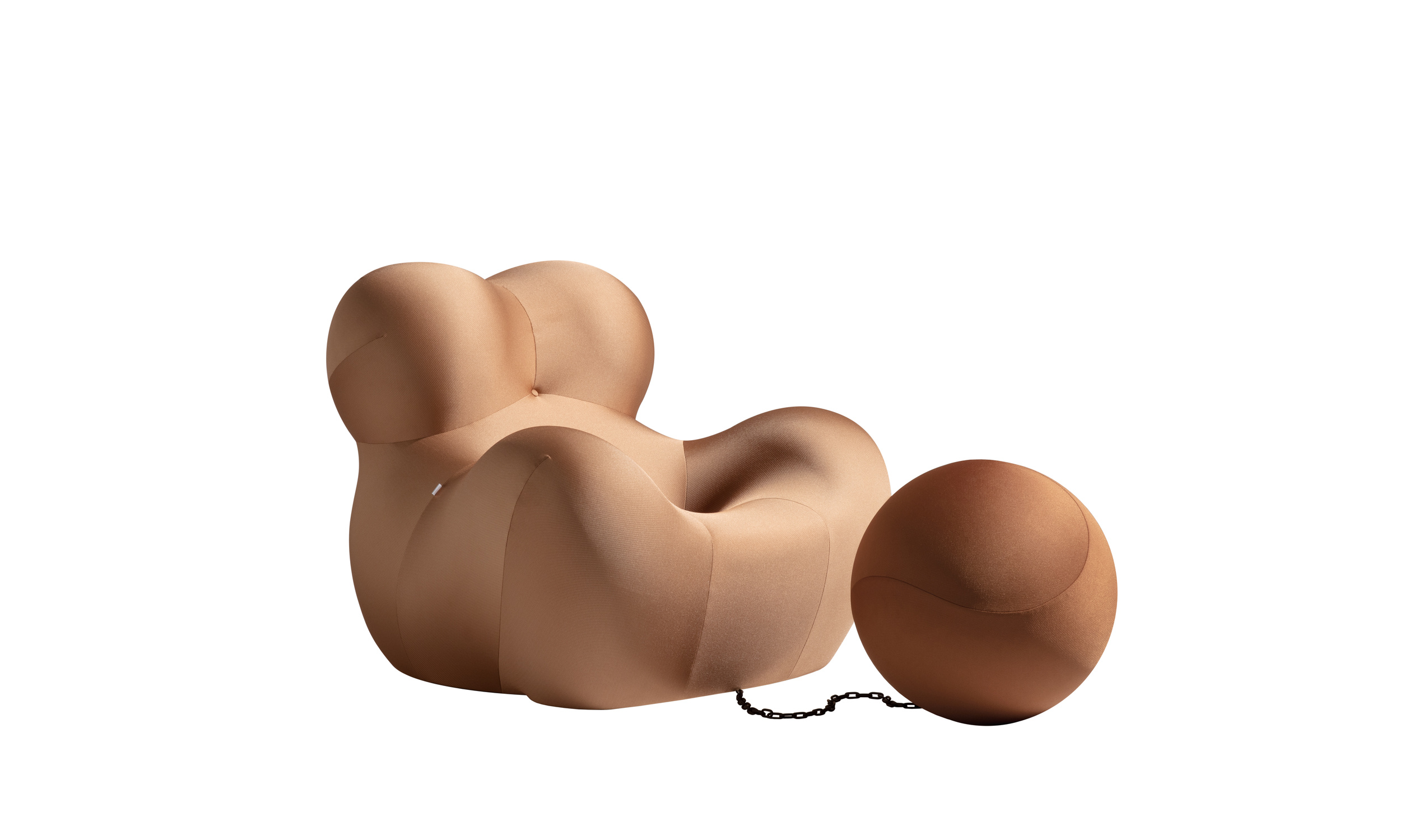 Famous icon of international contemporary design, Serie Up won last June the XXVII Compasso d'Oro "Award for Product Career 2022", the most significant award in the field of Italian industrial design. B&B Italia pays tribute to the anthropomorphic armchair with the limited edition "Compasso d'Oro Edition", available in just 500 numbered pieces. UP5_6 will be upholstered in the exclusive CD fabric in antique gold, while the spherical ottoman in bronze fabric will be tied to the armchair by means of an aluminum chain with corten finish.