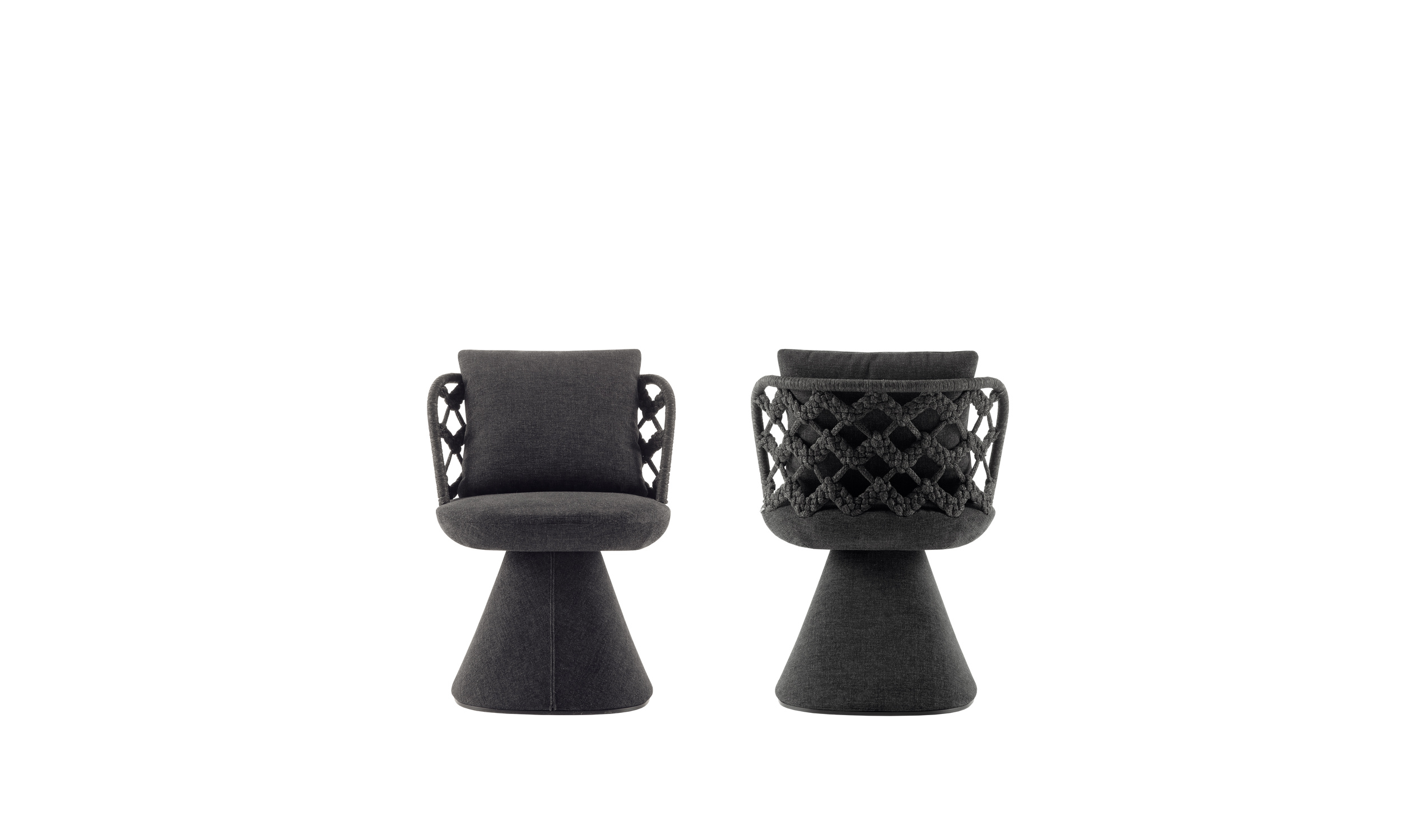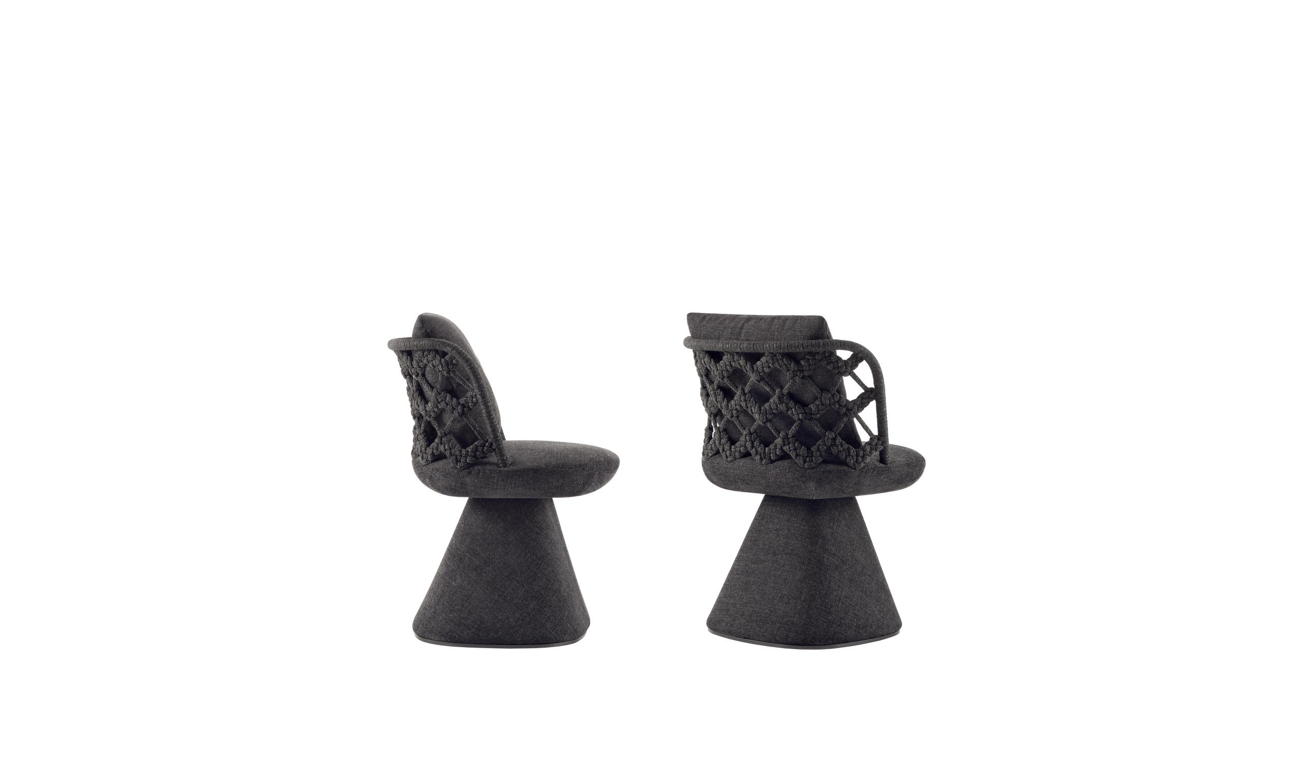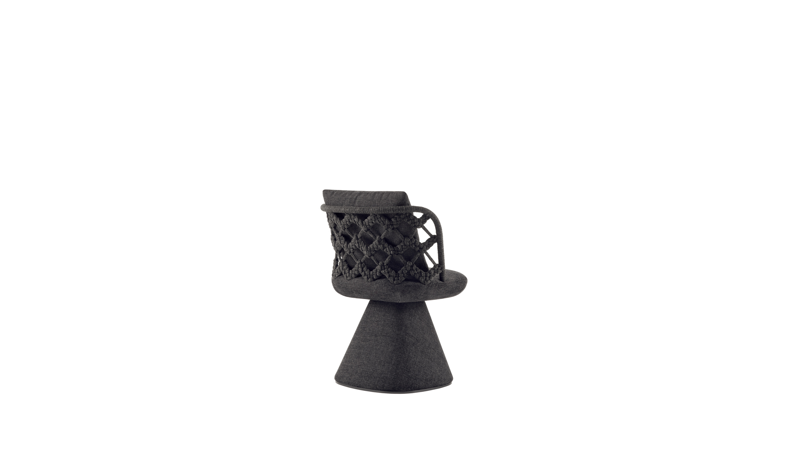 Following the success of Flair O’, a series of elegantly designed chairs available in indoor and outdoor versions, Monica Armani proposes Flair O’ Couture. Geometrically similar to the previous designs this new chair boasts a woven backrest made using a special circular loom (tombolo) in line with an ancient weaving technique typical of the area where B&B Italia is located.