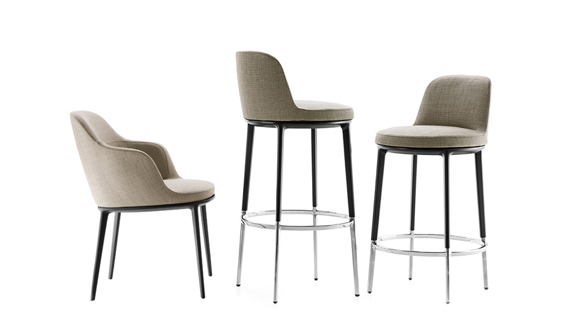Caratos系列不斷成長(zhǎng)并發(fā)展 —— 為多樣化的家居環(huán)境提供豐富的創(chuàng)意。 每件產(chǎn)品都擁有高識(shí)別度的壓鑄鋁基座。 除了2017年推出的椅子和扶手椅外,Caratos系列還有帶扶手的小扶手椅,扶手椅,浴盆扶手椅,兩個(gè)帶旋轉(zhuǎn)座椅的凳子,一張長(zhǎng)凳,一個(gè)擱腳凳和一張咖啡桌。 石墨和琥珀金屬結(jié)構(gòu)配有藍(lán)色,紫紅色和奶白色裝飾,與針織表面相得益彰。 值得注意的是,產(chǎn)品采用了一種如同“泰迪熊”般柔軟的絨毛 。 憑借這一新系列,Caratos可以說是一組靈活多變的產(chǎn)品,將在未來帶來新的驚喜。