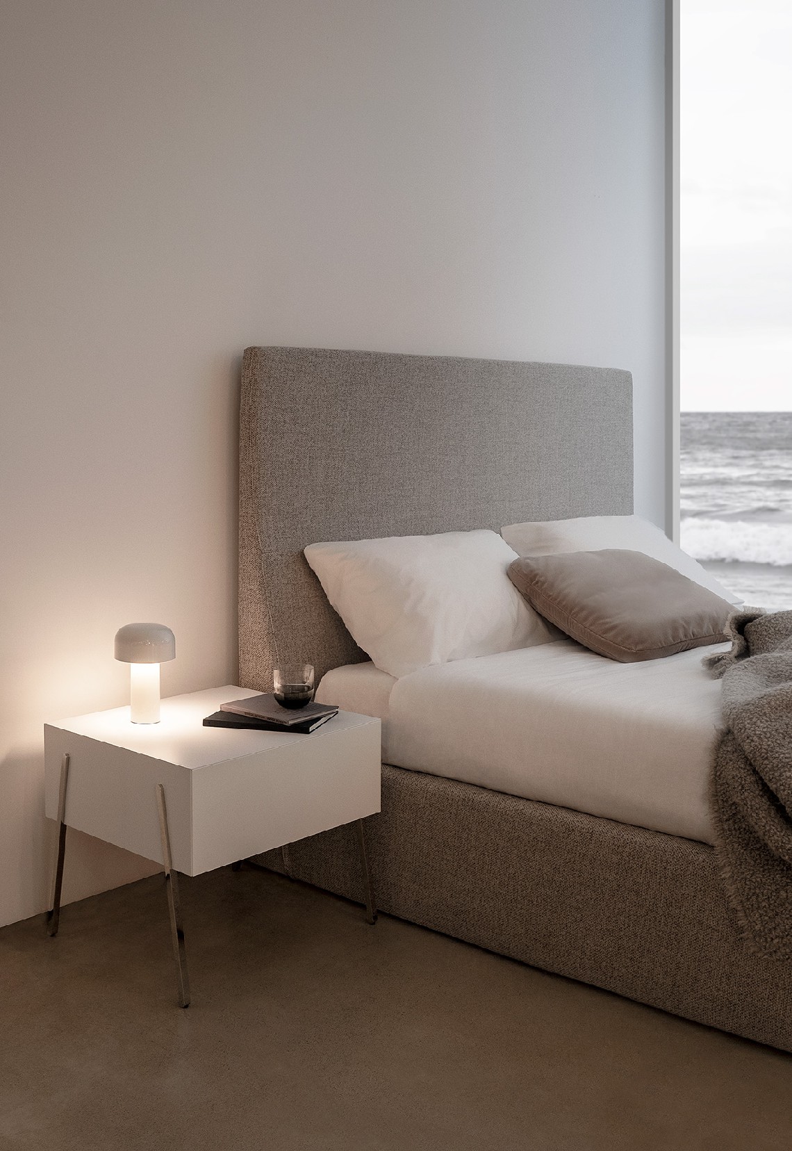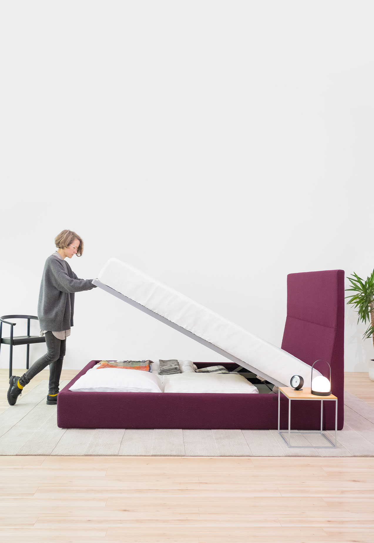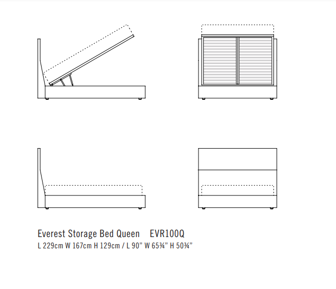 Everest is a contemporary storage bed with a high headboard and an economic footprint. Available in both Queen and King sizes.
