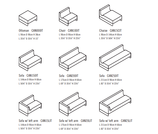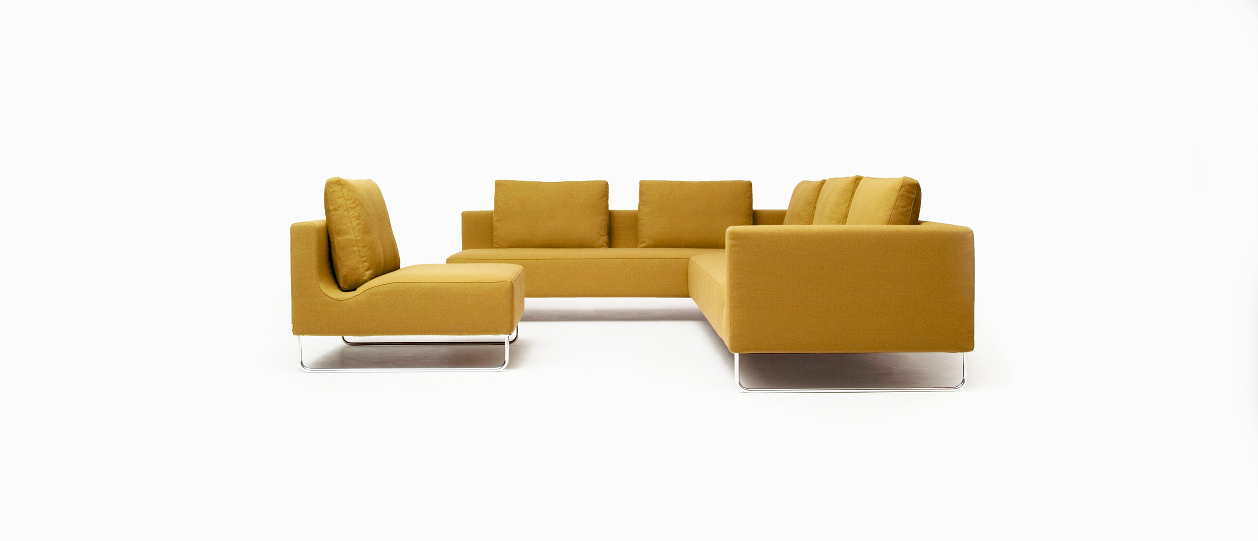 Canyon has a characteristic seat-scoop that holds cushions and bolsters in place. With its sled legs and clean lines, Canyon is perfect for home or contract use.