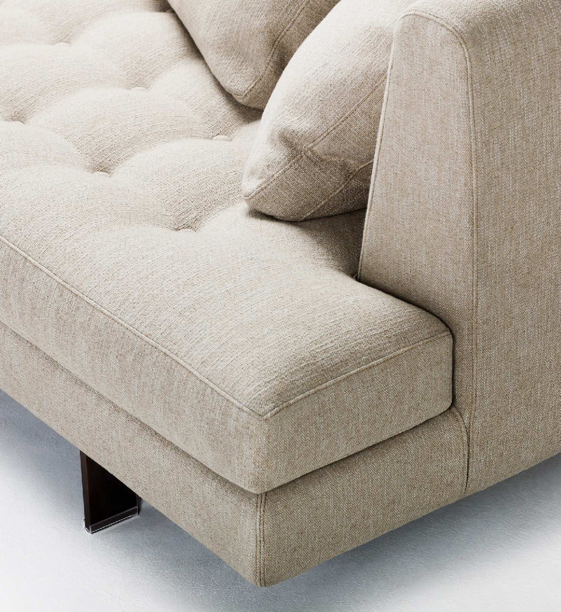 A contemporary take on a mid-century design. Edward uses traditional tufting on the seat combined with contemporary production techniques to produce a refined sofa. Available in a variety of sizes and configurations.