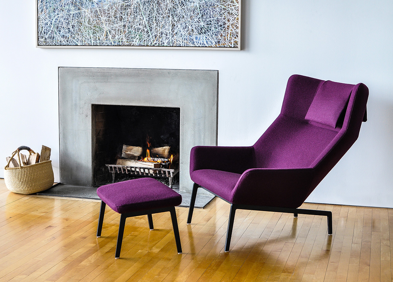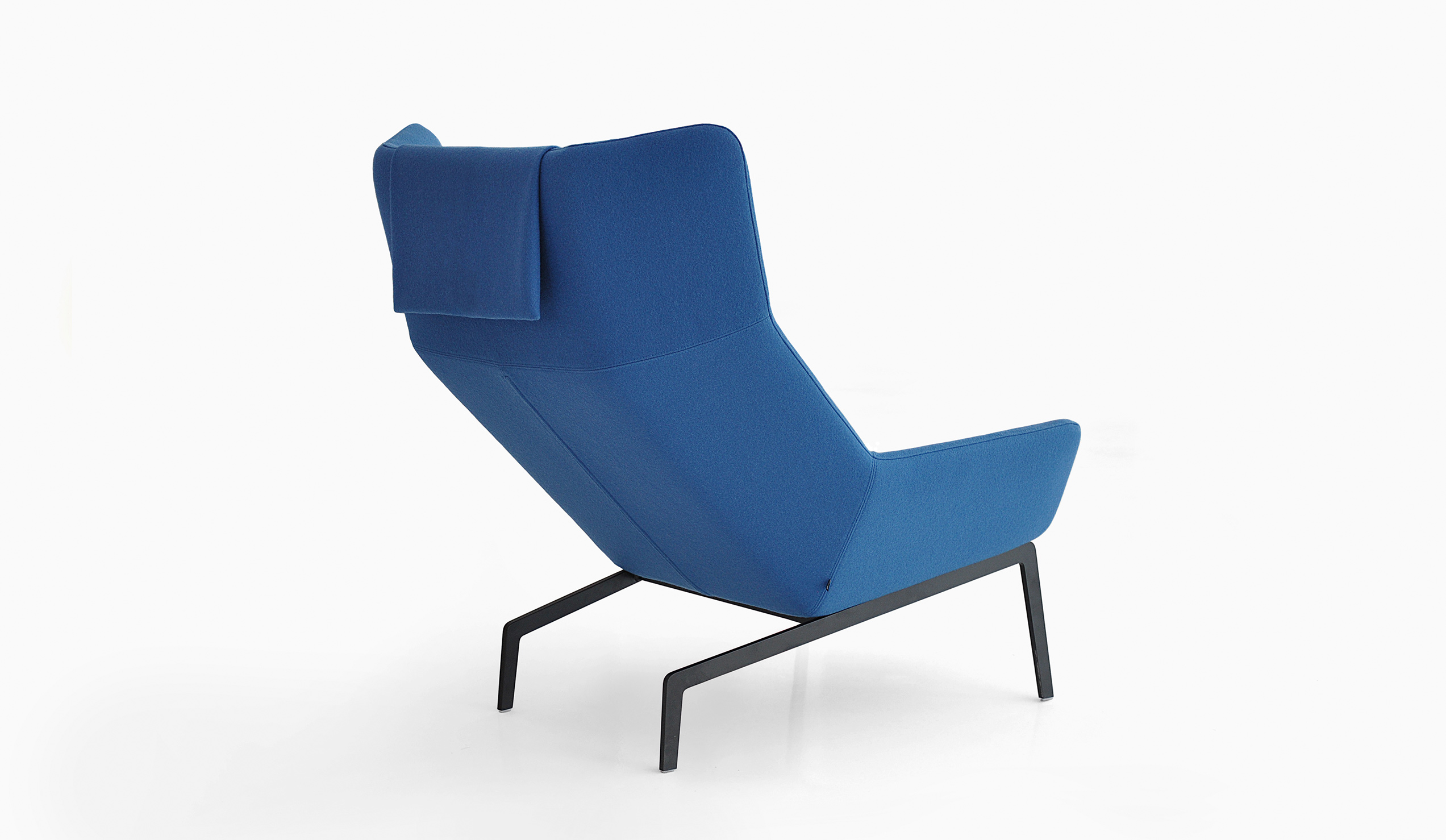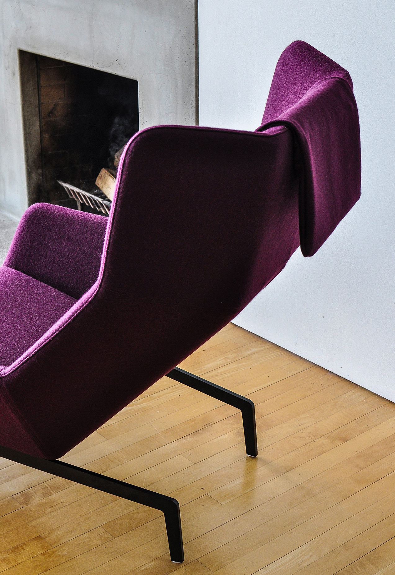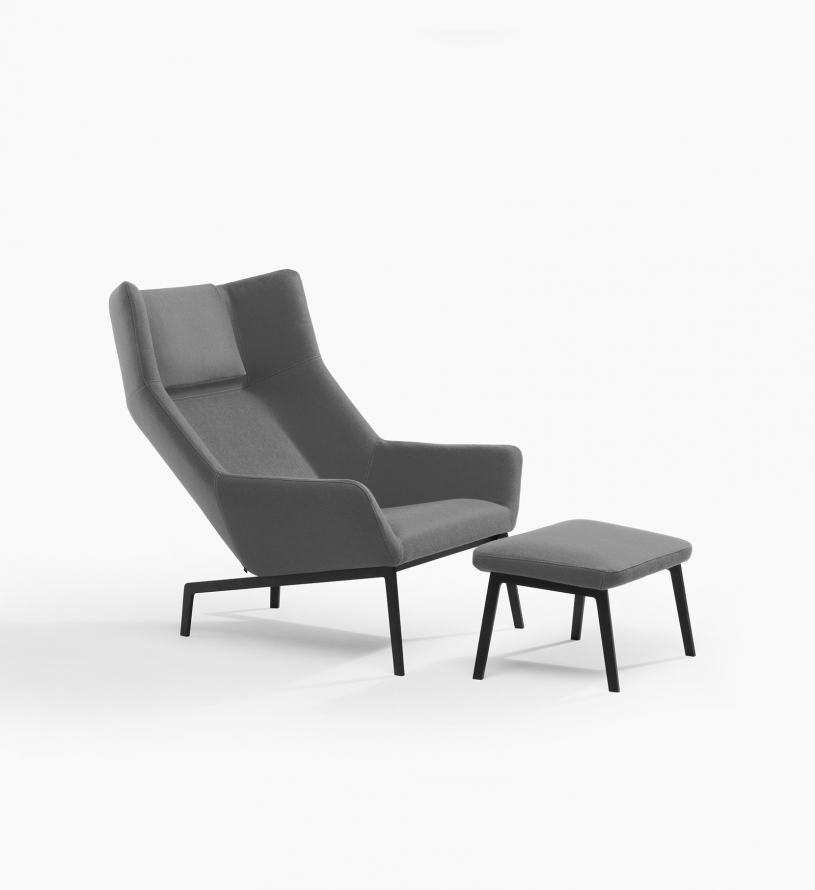 Elegant from all sides, Park is perfect for a wide range of environments including open concept spaces and lounges. The winged seat gives a sense of privacy and seclusion while being generous enough as not to restrict one to a prescribed position. The molded foam body contains an internal steel frame with elastic webbing allowing the whole chair to flex and adapt to the sitter. Combined with carefully selected foam densities and dimensions, this creates a contemporary chair that is superbly comfortable without the bulk of traditional padding. The upholstered seat sits on a simple precision-made steel base. Expertly sewn and fitted covers create a beautifully tailored appearance. A matching Ottoman compliments the aesthetic of the chair.