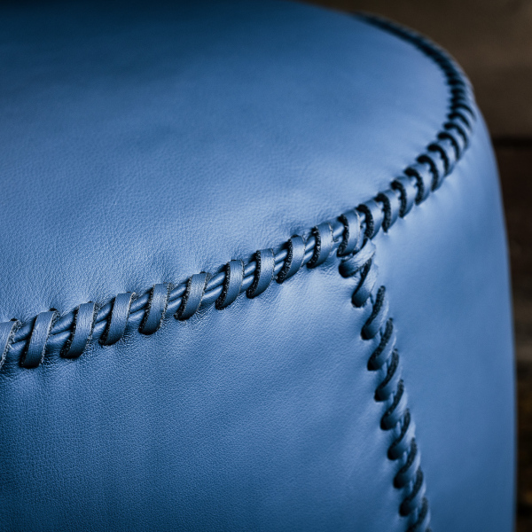 Upper padding 100% European feather. Hand-sewn leather cover. Non removable cover.