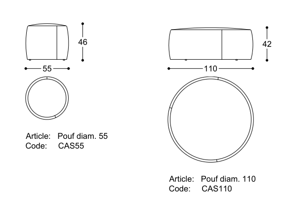 Collezione di pouf con struttura in multistrato di pioppo. Imbottitura in poliuretano espanso a quote differenziate