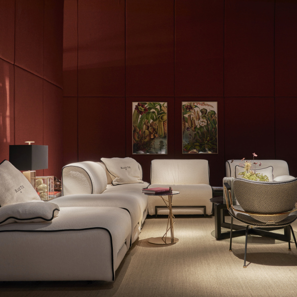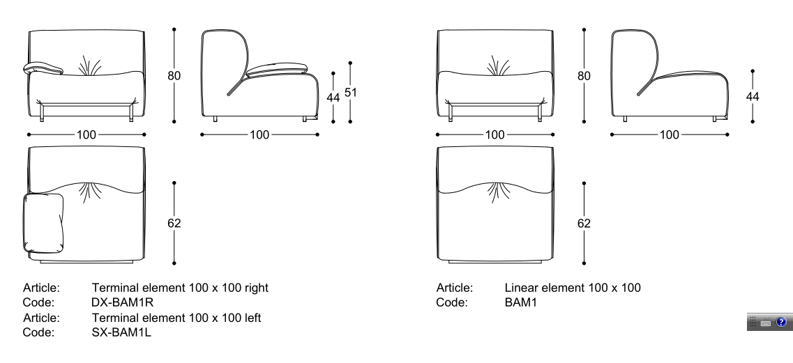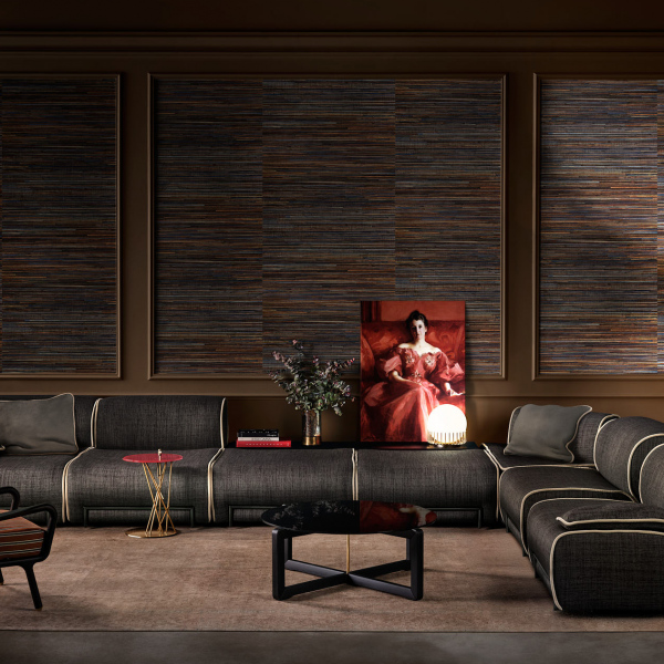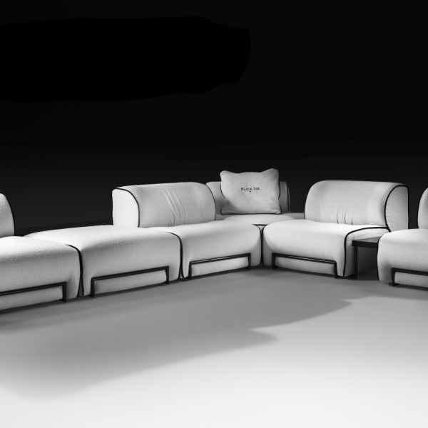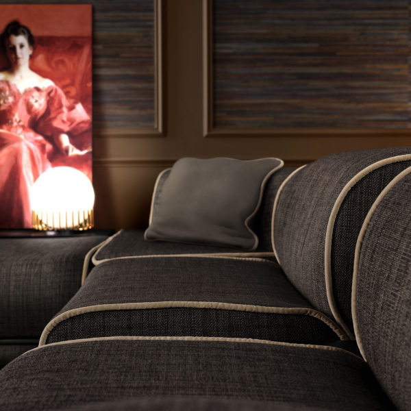 Modular sofa with structure in poplar wood. Padding in high-resilience expanded polyurethane, crossed elastic