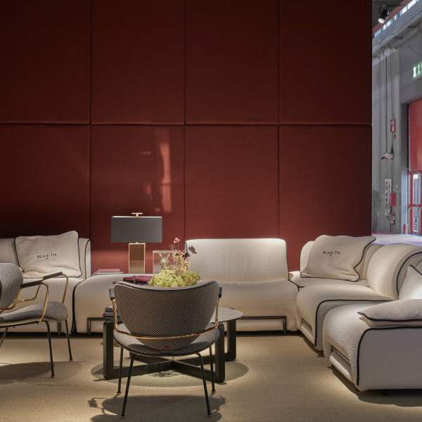 belt and upholstery in thermo-bonded fibre with stretch jersey. Base in dark chrome varnished metal rod. Fully