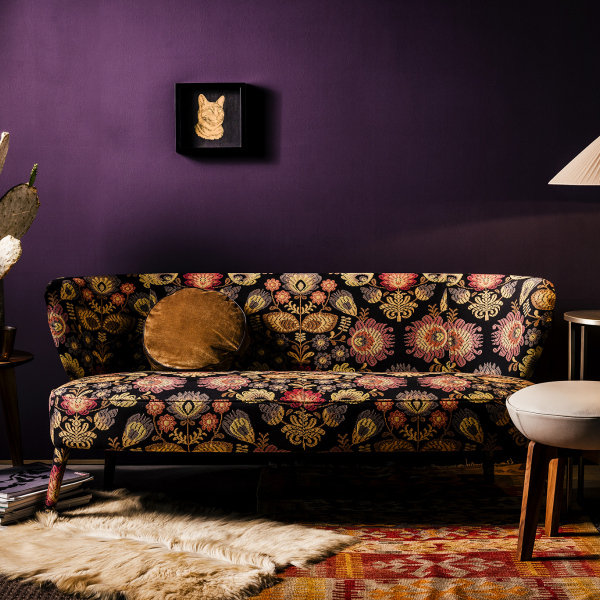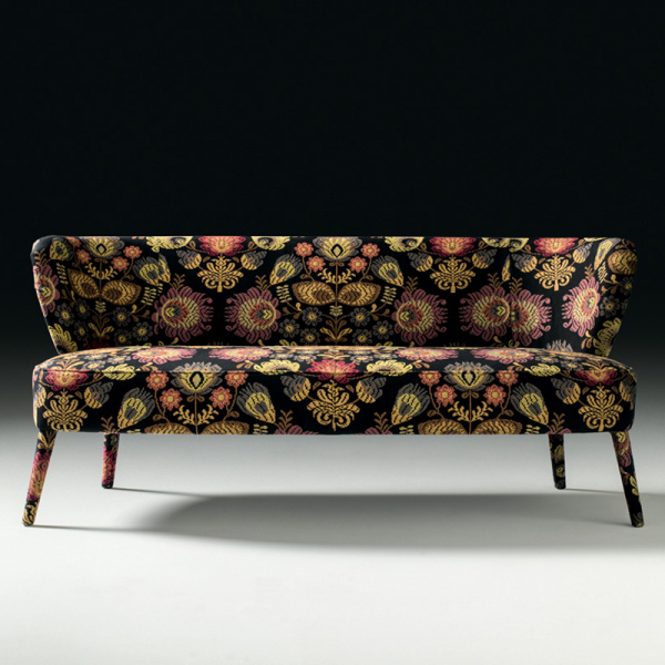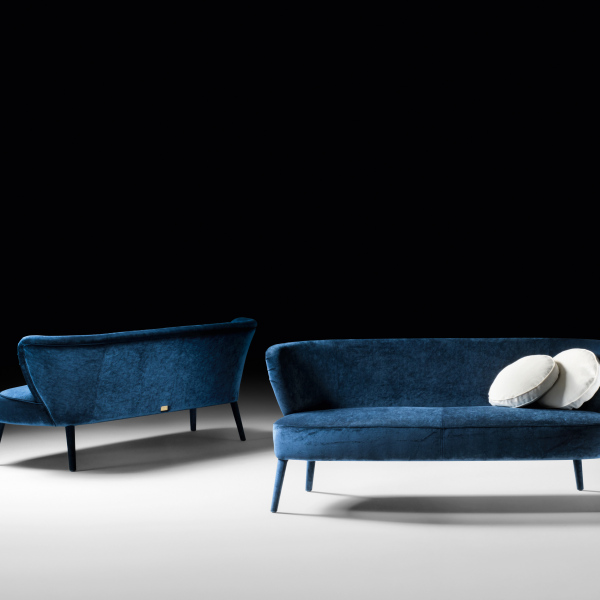 Divano con struttura in legno di faggio, seduta e schienale in poliuretano espanso ignifugo. Piedini rivestiti. Non